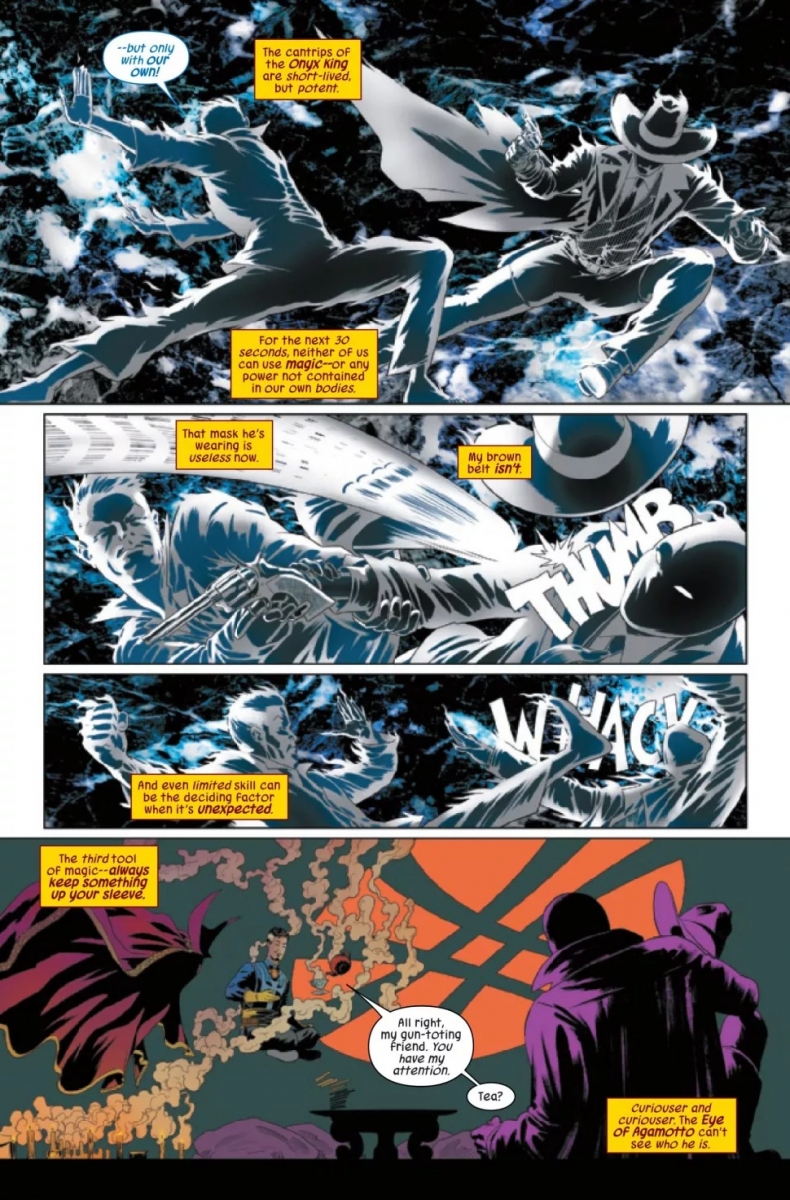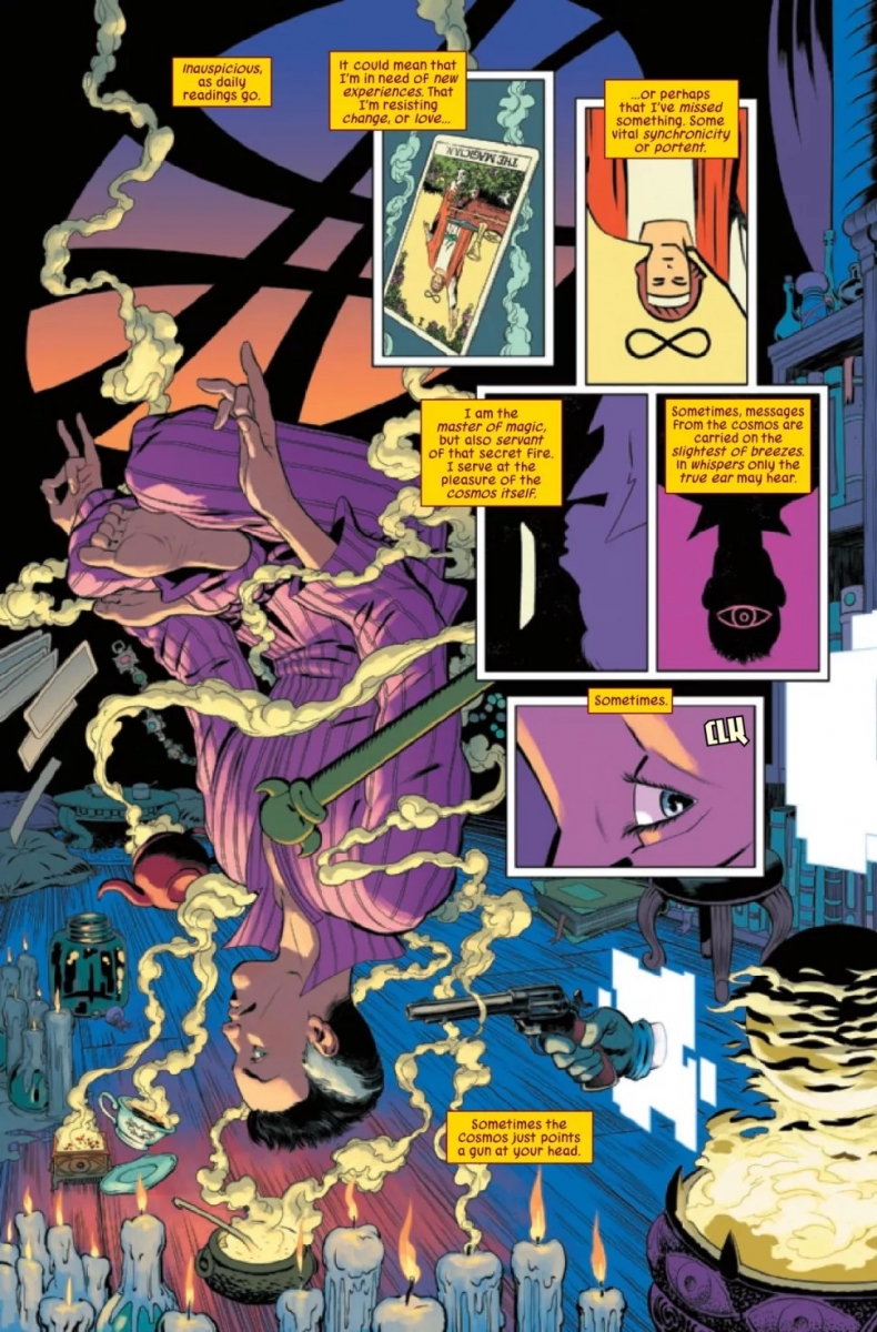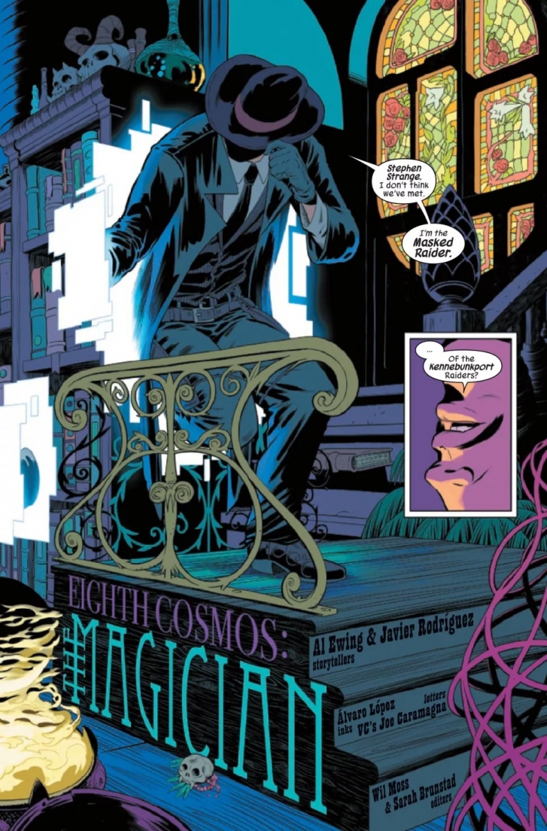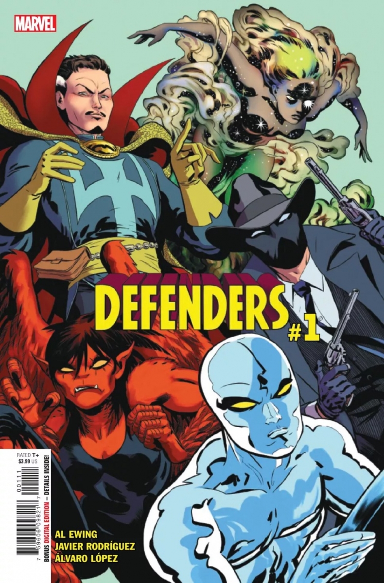 SUPERSTARS AL EWING & JAVIER RODRÍGUEZ REUNITE FOR A COSMOS-COLLIDING JOURNEY! When existence itself faces extraordinary threats, it needs an extraordinary defense! That’s when you call…THE DEFENDERS! DOCTOR STRANGE and the MASKED RAIDER take a non-team of Marvel’s weirdest, wildest heroes on a mission that will uncover the hidden architecture of reality itself! This cosmos was not the first to exist…but if the DEFENDERS can’t track Marvel’s oldest villain through the deepest trenches of time — it might be the last!