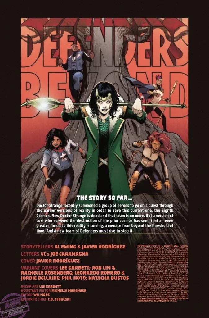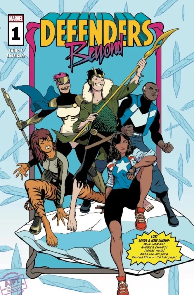 Al Ewing and Javier Rodríguez follow up their acclaimed DEFENDERS: THERE ARE NO RULES series with a new volume and an all-new lineup, including none other than Loki, God of Stories! When Doctor Strange sends a dire warning from beyond the grave, Blue Marvel, America Chavez, Taaia (Galactus’ mom!), Tigra and Loki assemble to defend reality itself! Plus, you won’t believe who shows up on the final page!