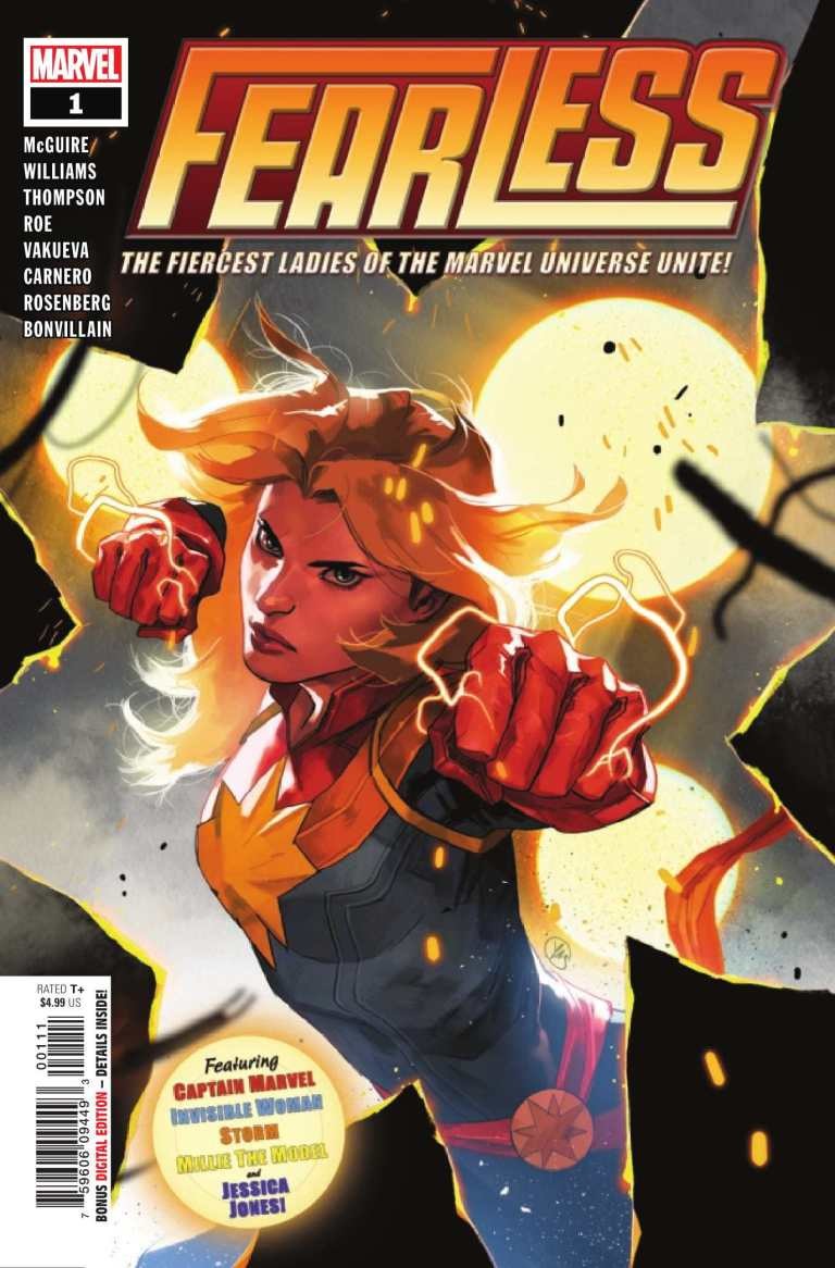 THE FIERCEST LADIES OF THE MARVEL UNIVERSE – ON AND OFF THE PAGE ! Straight off her silver-screen debut, Captain Marvel takes the world by storm! And speaking of the weather, Storm of the X-Men faces a problem only a goddess could solve. Add the Invisible Woman, and you’ve got an unstoppable trio in a story by Hugo-nominated novelist and SPIDER-GWEN: GHOST-SPIDER writer Seanan McGuire! Then, Leah Williams takes us back to the golden days of romance with Millie the Model! Plus: Get your dose of her story with profiles on classic and contemporary creators!