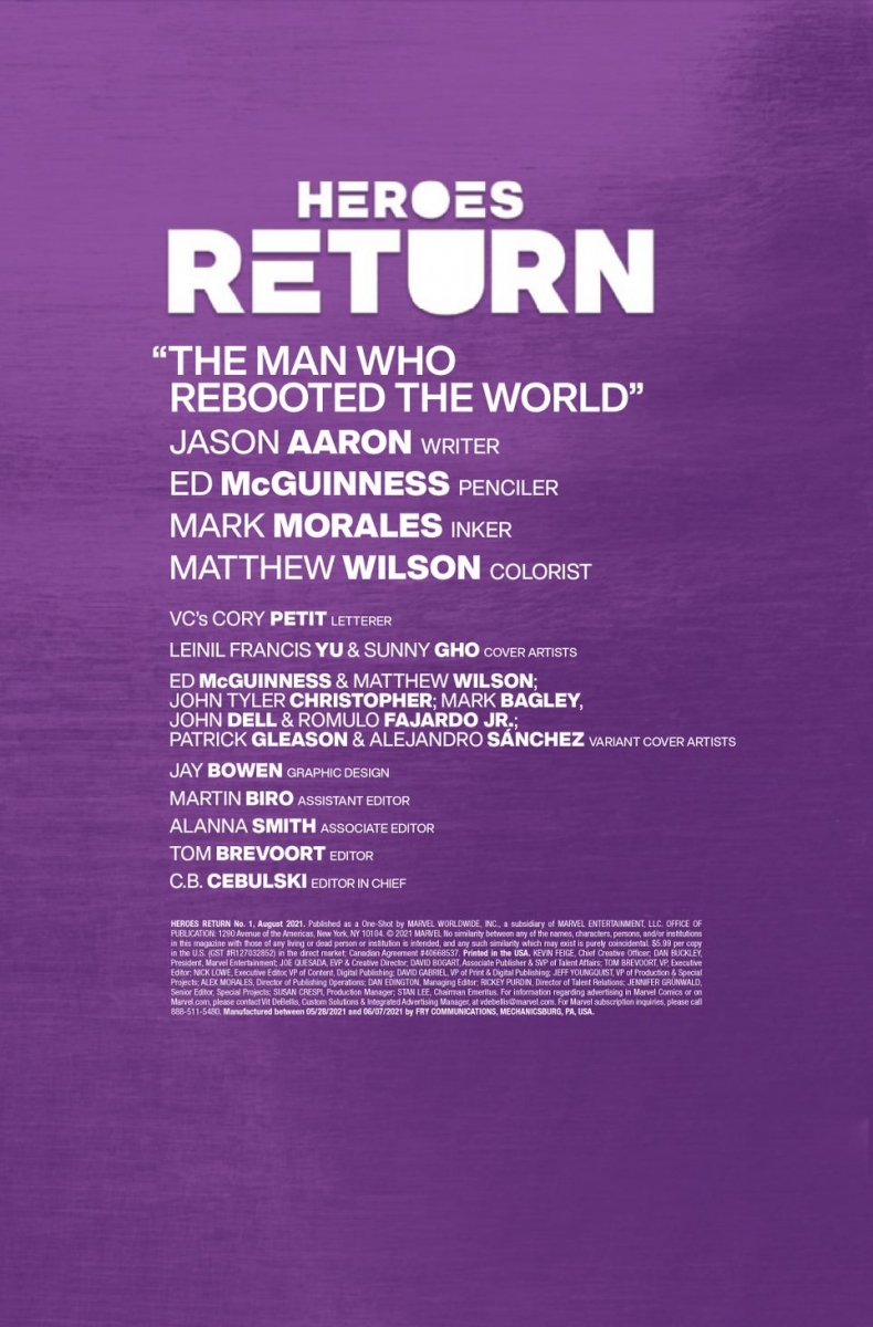 Next week sees the release of Heroes Return, an oversized Heroes Reborn one-shot from Marvel Comics; check out the official preview here…