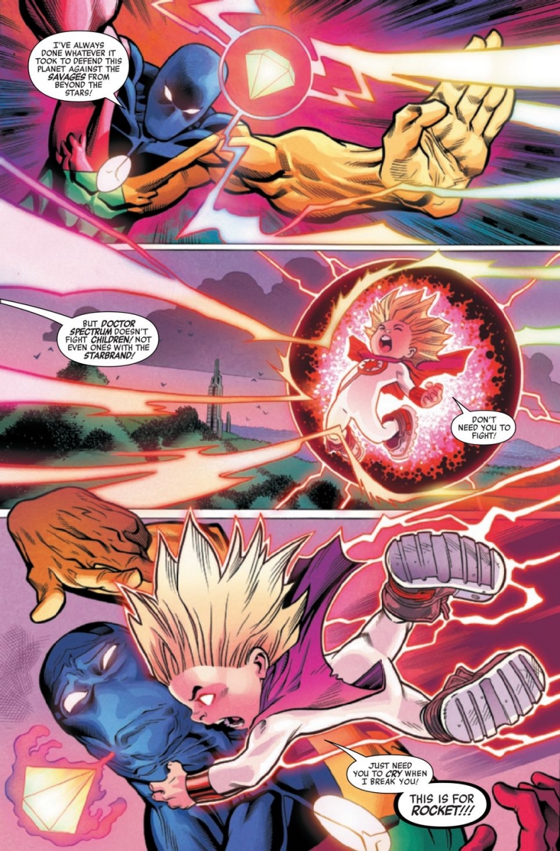 An epic, oversize slugfest between the Squadron Supreme and an otherworldly group of Avengers for the final fate of the whacked-out world of HEROES REBORN.