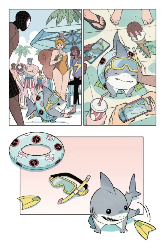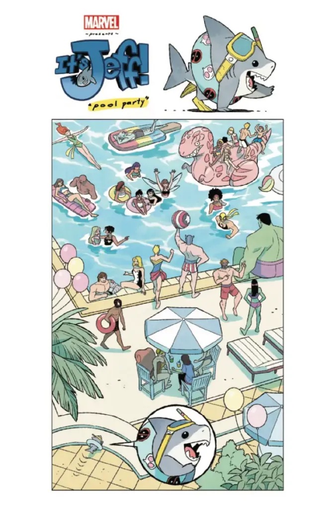 Since his very first appearance, Jeff the Land Shark has flooded our hearts like an adorable tidal wave! Now the ingenious, the extraordinary, the unbearably innocent Jeff embarks on his own adventures across the Marvel Universe! You thought it was safe doing laundry or going for a leisurely swim in the pool…but no activity can protect against Jeff’s cuteness! Collecting the hit Infinity Comics series from the Marvel Unlimited app, this one-shot features a brand-new cover and tail…we mean tale!