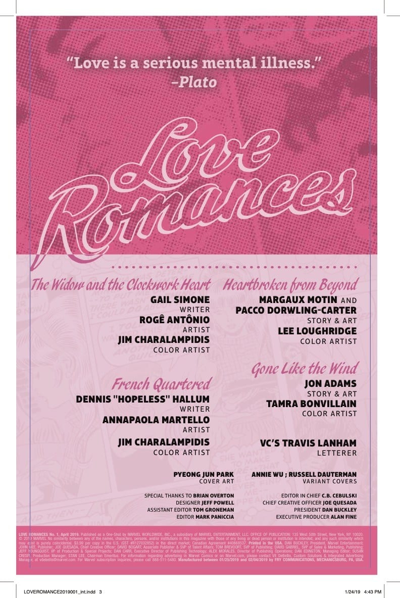 Love Romances #1 is out on February 20th, priced $3.99.