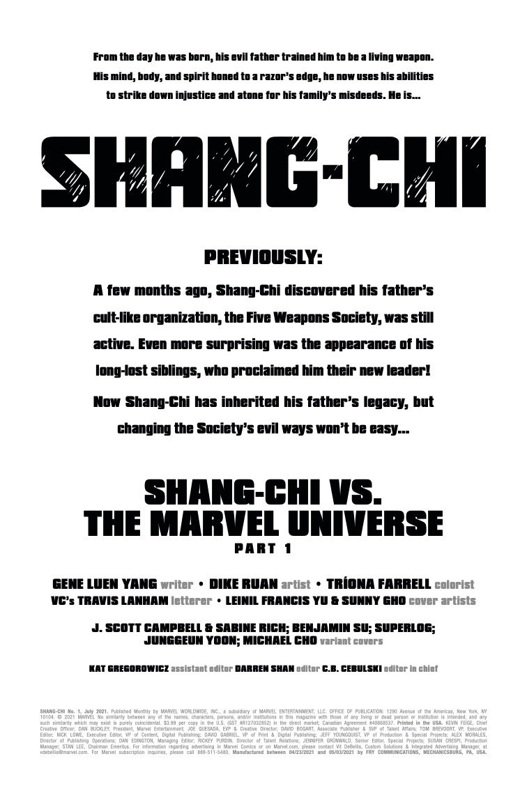 Shang-Chi #1 goes on sale on May 19th, priced $3.99.