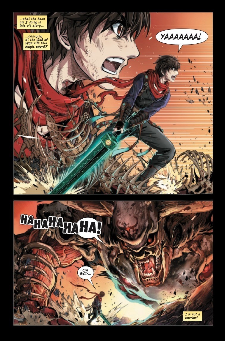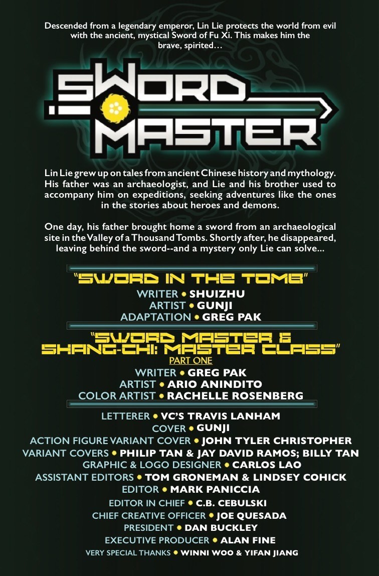 MIGHTY MARVEL MARTIAL ARTS DOUBLE TROUBLE! ALL NEW ONGOING SERIES! You saw him tear through Fire Goblins in WAR OF THE REALMS with his big, damn magic sword! Now learn the mysterious origins of LIN LIE, A.K.A. SWORD MASTER, Marvel’s newest Chinese superhero, in the English language debut of the original series written by Shuizhu and drawn by Gunji! Haunted by dreams of demons, Lin Lie hunts for his missing archeologist father – and for the secret of the black sword he left behind. And in a brand new story written by Greg Pak (NEW AGENTS OF ATLAS), Sword Master teams up with SHANG-CHI! What happens when an undisciplined, untrained kid with a magic sword tangles with the one and only, undisputed MASTER OF KUNG FU? (Spoiler alert: they will indeed drive each other crazy, with huge ramifications for the Marvel Universe!)