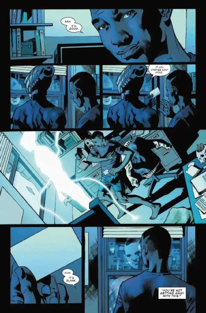 THE TRANSFORMATION OF THE MARVEL UNIVERSE BEGINS! Superstar creators Jonathan Hickman and Bryan Hitch team up! The Illuminati must form once again to stop the Maker from his plans to destroy—or perhaps rebuild—the universe, with Miles Morales at the center of it all! Bryan Hitch’s work on THE ULTIMATES helped redefine super hero comics for the 2000s—wait until you see what he and Jonathan have in store for this decade! Including new data pages by Jonathan Hickman—plus exclusive behind-the-scenes material on the world-building that has gone into this project!
