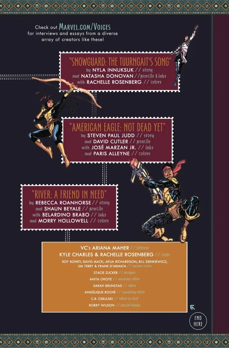 THE HIT VOICES SERIES CONTINUES WITH AN EXTRAORDINARY ARRAY OF INDIGENOUS TALENT! Year two of Marvel’s Voices kicks off with a celebration of Indigenous characters and talent! Get the full story behind River, the mysterious stranger from the pages of Rebecca Roanhorse’s new ECHO series! Discover Snowguard’s greatest hopes and fears in a tale by celebrated filmmaker Nyla Innuksuk! And many more reveals to come. New and established creators explore the wonders of the Marvel Universe—catch the next big wave here!