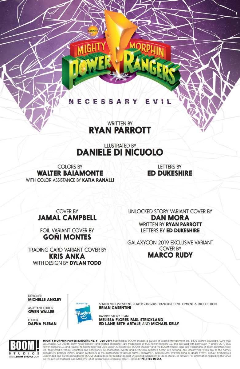 ‘Necessary Evil’ continues this week with the release of Mighty Morphin Power Rangers #41, and you can take a look at a preview of the issue here courtesy of Boom! Studios…