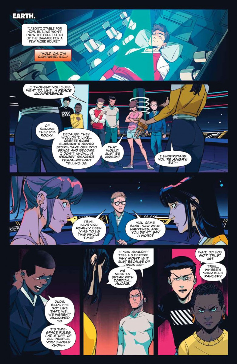 NECESSARY EVIL CONTINUES! After a shocking betrayal, the Omega Rangers are forced to return to earth—and to reveal their identities to the Mighty Morphin Power Rangers. But can either team of Power Rangers survive the truth?
