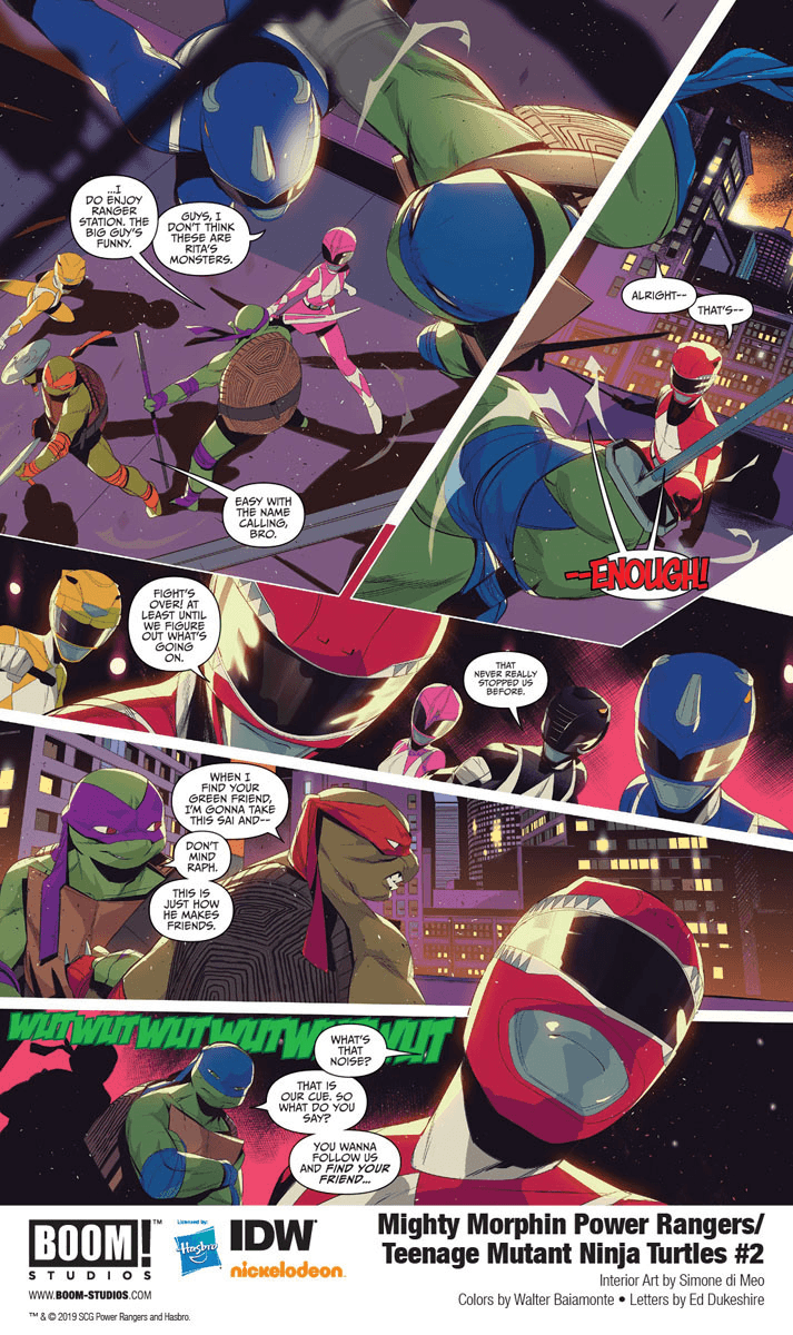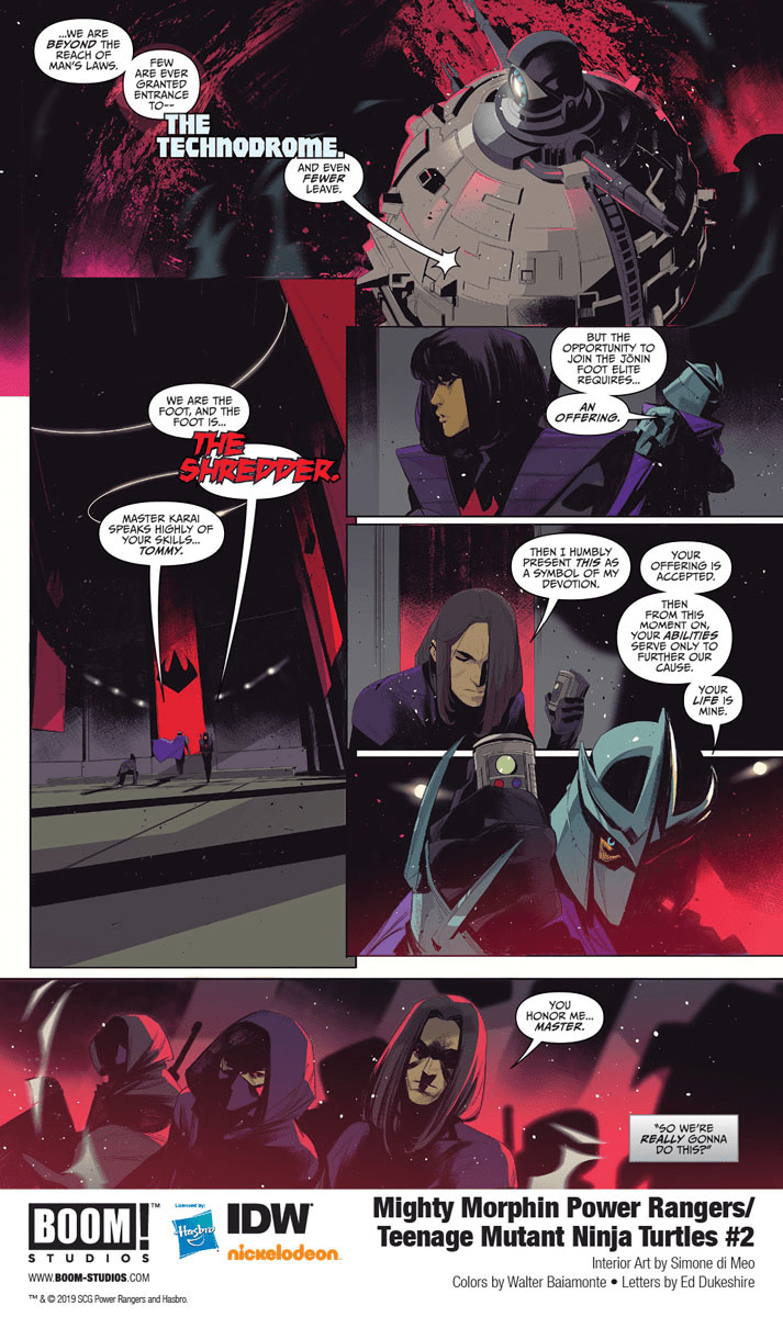 Boom! Studios and IDW Publishing release Mighty Morphin Power Rangers / Teenage Mutant Ninja Turtles #2 next month, and we’ve got a preview of the crossover issue for you here; check it out…