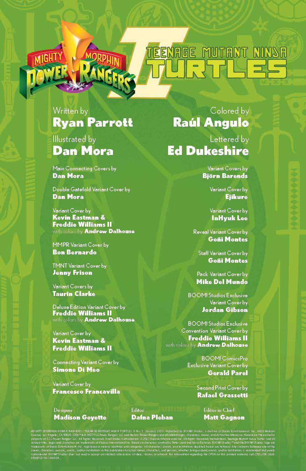 It’s been six months since the Teenagers With Attitude and the Heroes In A Half Shell teamed up to defeat the unholy alliance of Rita Repulsa and Shredder, but a new threat will force them to reunite in the crossover YOU demanded! Between an invasion from beyond, old enemies teaming up with unlikely accomplices, and a threat to the Rangers’ powers themselves, will the two teams survive the onslaught, or will they need help from the most unexpected ally imaginable? Longtime Power Rangers architect Ryan Parrott (Rogue Sun) joins forces with superstar artist Dan Mora (World’s Finest, Once & Future) to deliver the follow-up to the hit crossover! Collect all four connecting main covers by Dan Mora, a very special double gatefold variant, and don’t miss this collector’s opportunity as TMNT co-creator Kevin Eastman and Freddie Williams II team up for a variant cover for every issue in this series! But that’s not all, a Deluxe Edition will include 1 of 10 intermixed trading cards and an EXCLUSIVE print celebrating this epic crossover event!