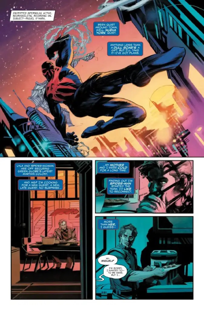 Marvel Comics releases Miguel O’Hara: Spider-Man 2099 #1 on Wednesday, and you can check out the official preview below…
