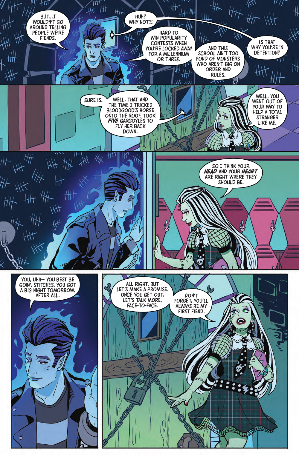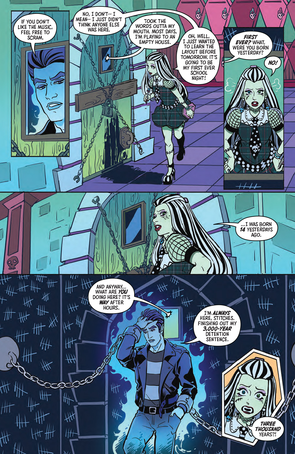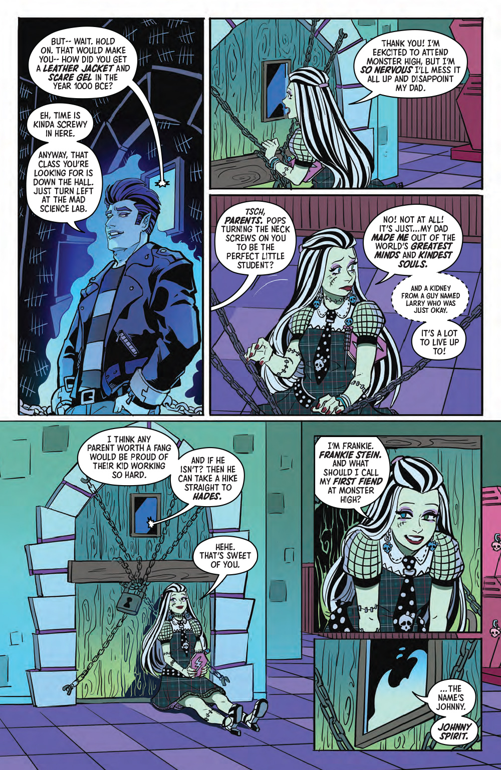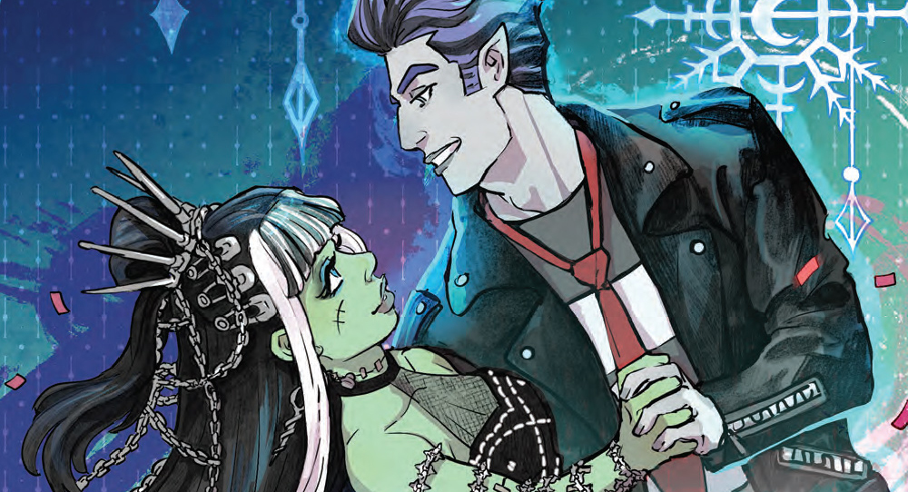 Happy Howlidays, ghouls. Blankets of snow have settled over Monster High, which can only mean that the Howliday Ball is around the coroner. There’s nothing quite like a school dance to scare up some defrightful drama. Spotted: Sparks flying between Frankie Stein and Johnny Spirit, Monster High’s ultimate bad boy. After 3,000 years of detention, the ghost is still stirring up trouble, so what could he want with the darling daughter of our headmaster? Could it be that Frankie’s electric personality has finally melted the bad boy’s ice-cold heart?