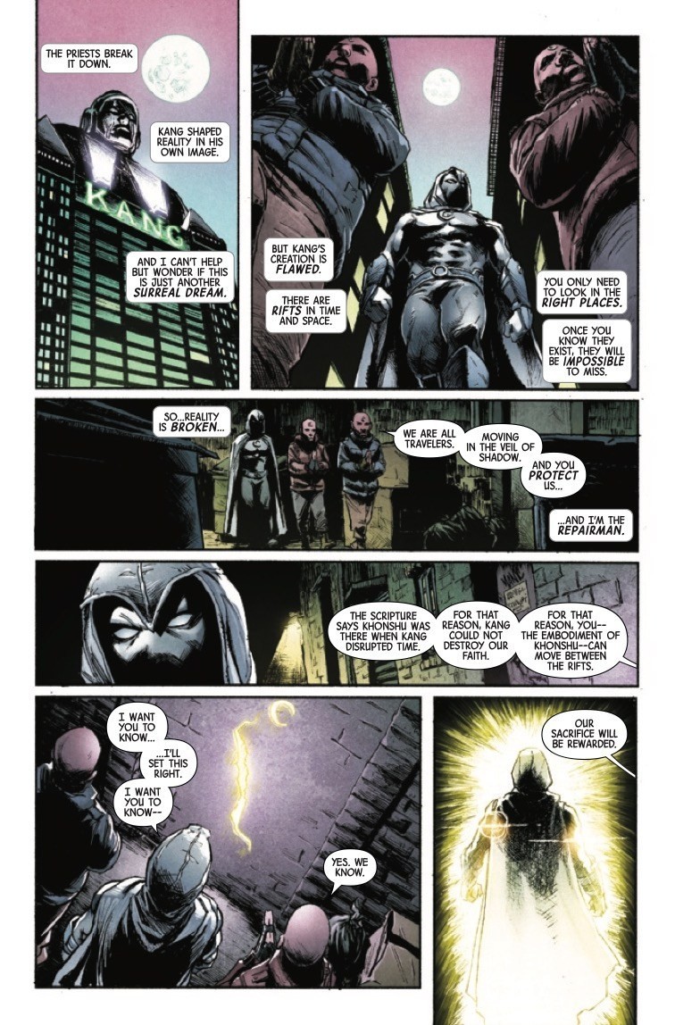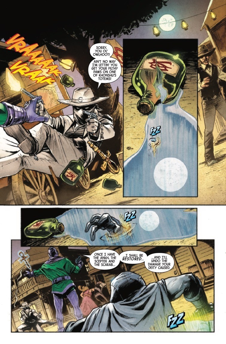 Moon Knight Annual #1 hits comic book stores this coming Wednesday, pitting its titular hero against the time-travelling supervillain Kang the Conqueror in this latest Acts of Evil story. Check out a preview here…