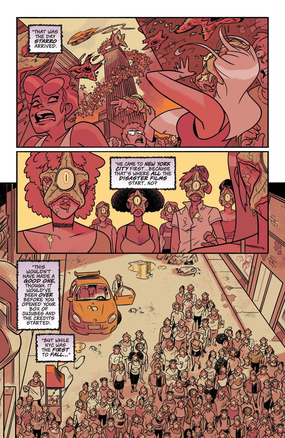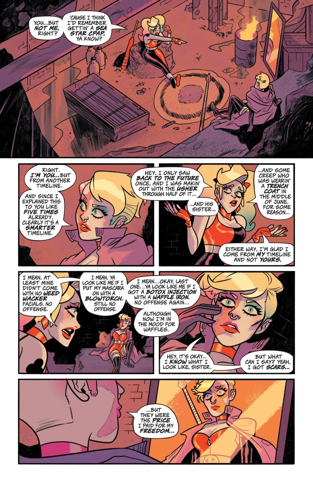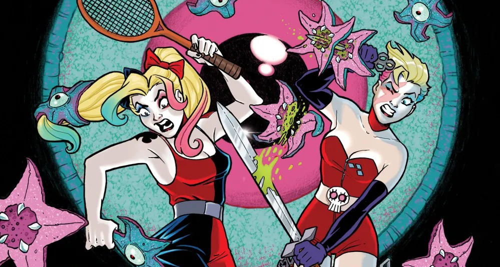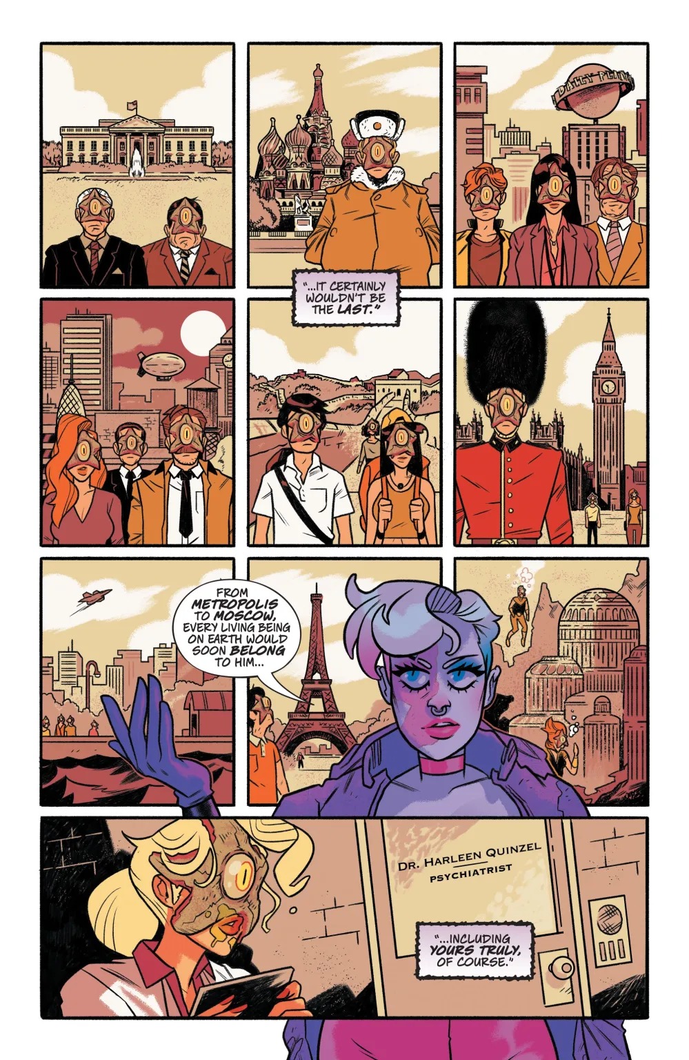 Harley’s come face-to-face with the most unexpected ally—herself! But just who is this strange Quinn copy, and what the heck is she doing on this strange alternate Earth devoid of heroes and overrun by Starro’d versions of all of Harley’s best friends? (Here’s a hint: it has something to do with Harley screwing up the DCU.)
