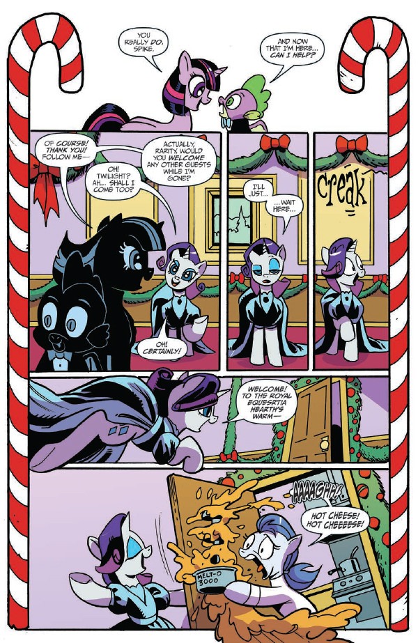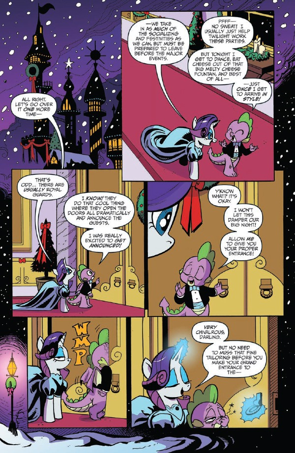 When Rarity is invited to three parties on Hearth’s Warming Eve—one in Manehattan, one in Canterlot, and one at home in Ponyville—she is loathe to miss out on any of the fun, and decides that instead of deciding, she’ll just go to all three! But between train rides, avalanches, and general distraction, this plan doesn’t work out as well as she’d hoped… Plus, a very special extra story to warm your hearth this holiday season!