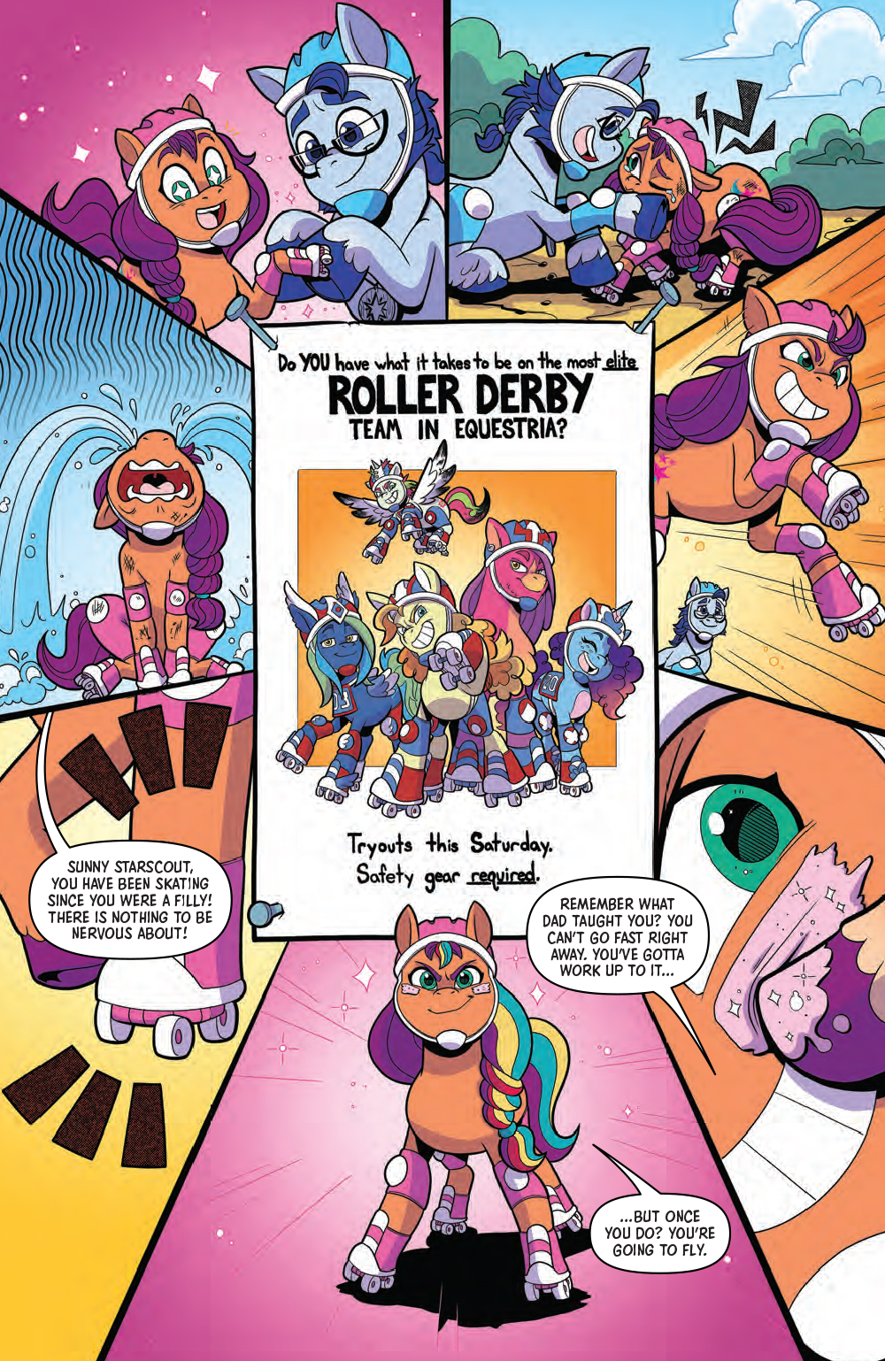 Lace up your skates, everypony, we’re heading to the Kenbucky Roller Derby! After getting rejected from the local roller derby team, Sunny sets out to form her own team. Thanks to self-appointed team manager Pipp and her ClipTrot sleuthing skills, they find the perfect pony to join them: Tracy Tailspin, retired derby legend! And she lives right in Maretime Bay! Tracy agrees to help on one condition: Sunny must complete a super-challenging skating obstacle course. But with her sights set on the Kenbucky Roller Derby, nothing can stand in her way!