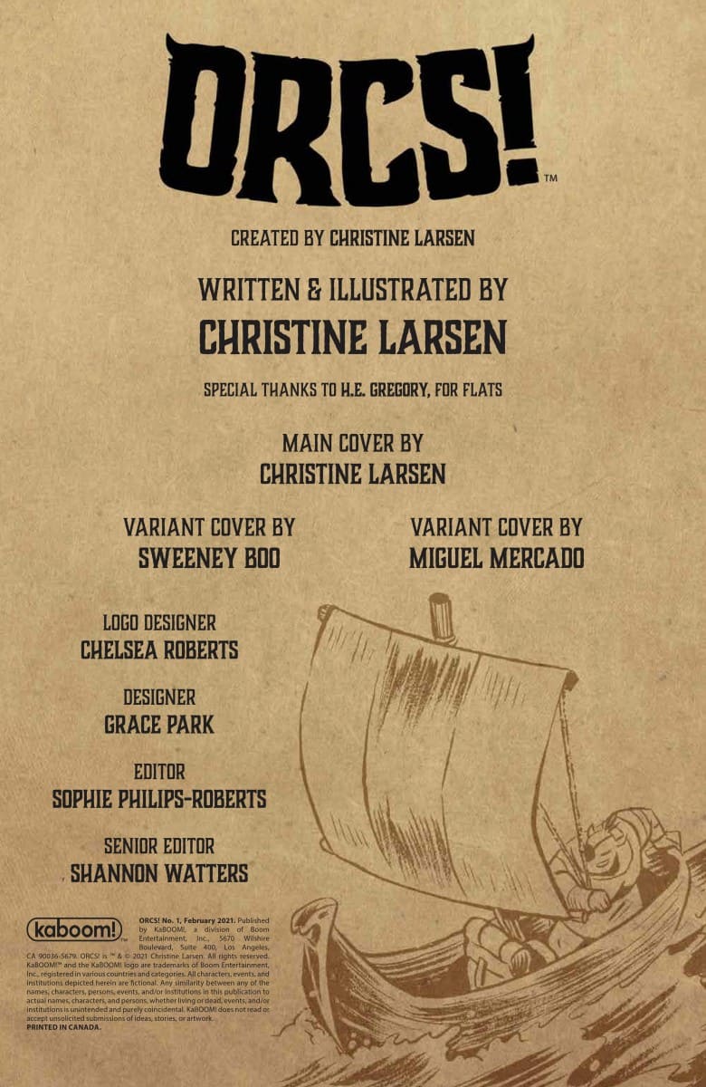 Boom! Studios launches its new series ORCS! from acclaimed cartoonist Christine Larsen (Adventure Time) this coming Wednesday, and you can take a look at a preview of the issue here…