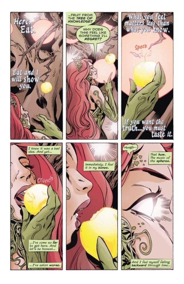 A tale of times past! No matter what Pamela Isley does, mercy or slaughter, humanity seems dead set on betraying the Earth. Yet Ivy still refuses to let go of her own humanity in service of that which she claims to love. Hoping to discover a way forward, Poison Ivy sets out to find the living repository of all secrets — the Tree of Knowledge. But like those who have tasted the tree’s fruit before her, Ivy learns far more than she bargained for.