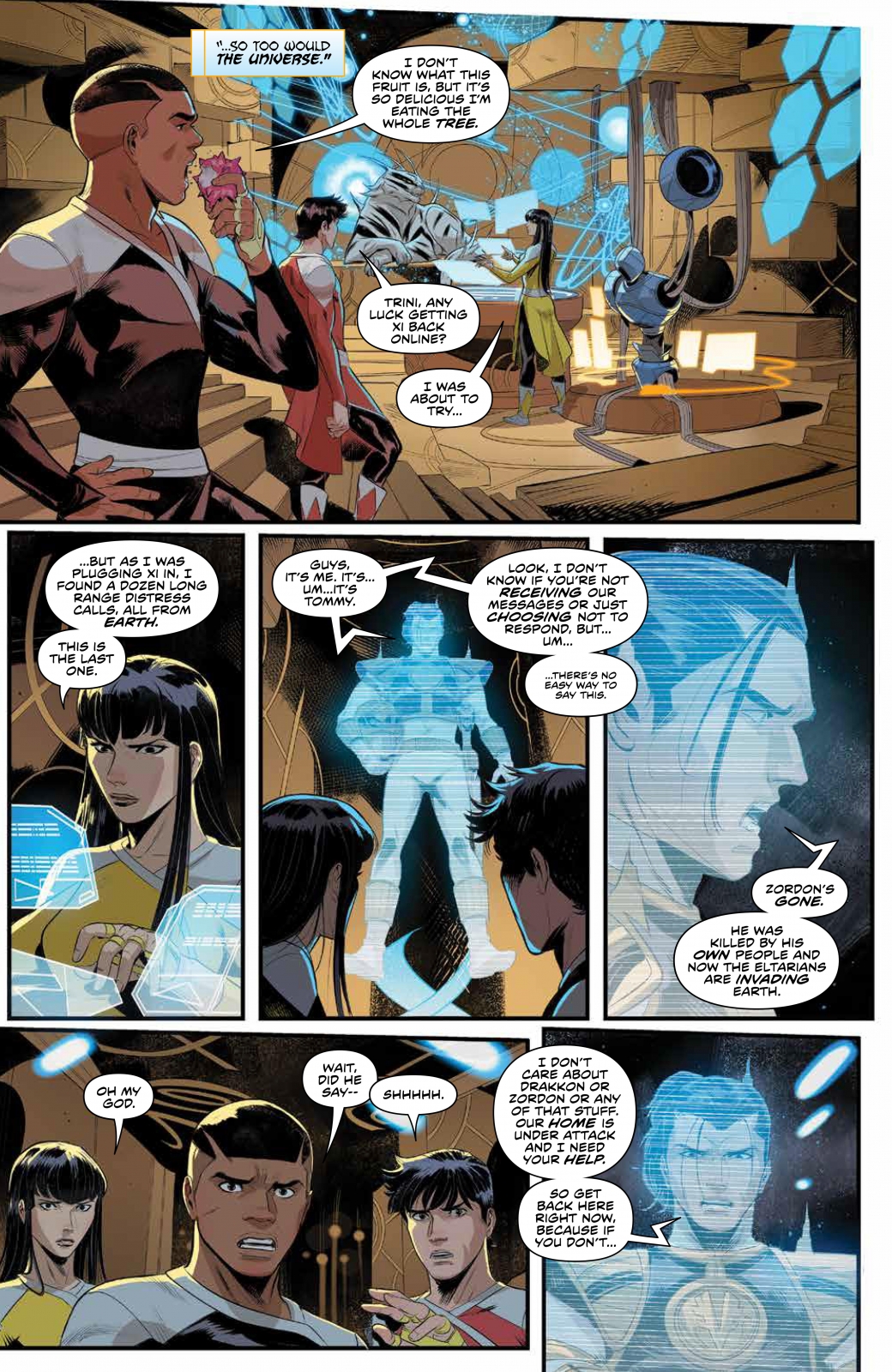 THE ELTARIAN WAR IS HERE! The Omega Rangers, including their unexpected savior the NEW Blue Omega Ranger, race against time to beat the impending Empyreal threat to Earth. But can they deliver the critical secret they’ve uncovered to Zordon before it’s too late? New York Times best-selling writer Ryan Parrott and artist Francesco Mortarino deliver the explosive second chapter of The Eltarian War!