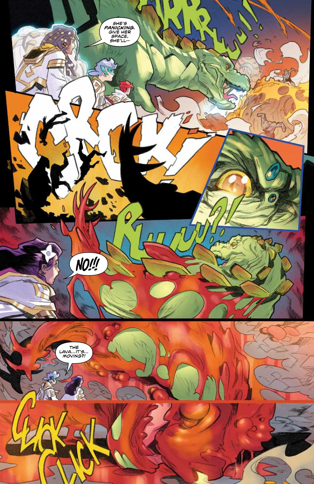 Discover the truth behind the Phantom Ranger, the Morphin Masters, Power Rangers, and the Morphin Grid itself in the series that will unlock the secrets of the Power Rangers Universe! In the ancient past, six teens scramble inside the Masterforge to save a mysterious figure they rescue from the Morphin Grid. But in doing so, they strand themselves from their parents, the Morphin Masters, who ascend into the Grid itself to protect it from Dark Specter. Can they protect Earth and the Grid itself from the impending forces headed their way? That question will have to wait, because first they must defend themselves against…a T-Rex attack!