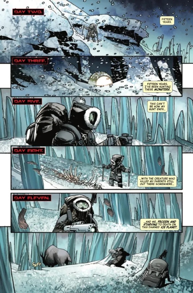 Theta crash-lands on a tundra planet, and her odds of surviving are looking slim! Her only hope is to trek through the wilds to the nearest outpost. But the cold isn’t the only thing she has to worry about…as a Predator watches in the shadow, ready to strike!