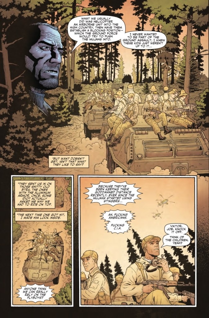 Valery Stefanovich has put himself on a collision course with The Punisher. The roots of this issue go back to Afghanistan in the 1980s where Valery spent time in the Russian Special Forces and some of the most horrific things you can imagine. Things that CHANGED him. Frank and Valery have so much in common, but that never bodes well, does it?