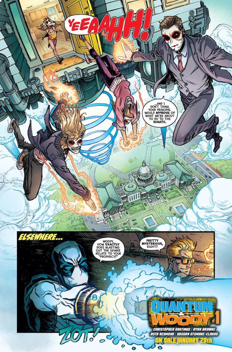 Valiant Entertainment launches its new Quantum & Woody series this month from the creative team of Christopher Hastings and Ryan Browne, and we’ve got a preview of the first issue for you here; take a look…