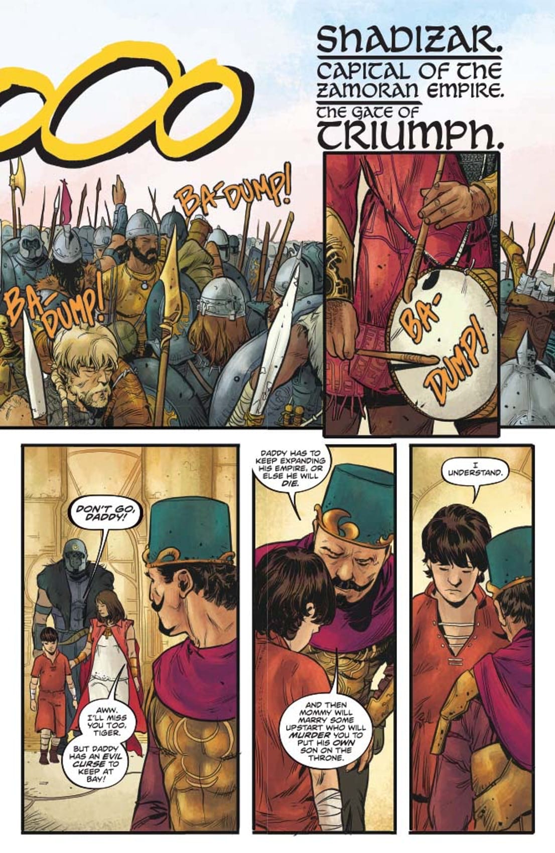 Dragan The Magnificent marches his massive Zamoran army to do battle with Sonja’s puny Hyrkanianforces. Any other monarch would retreat in cowardly fear. But Sonja will rely on the lessons she learned at THE COURT OF THE KHITAI, and empty her nephew Kryon’s BROTHERS OF MISFORTUNE…