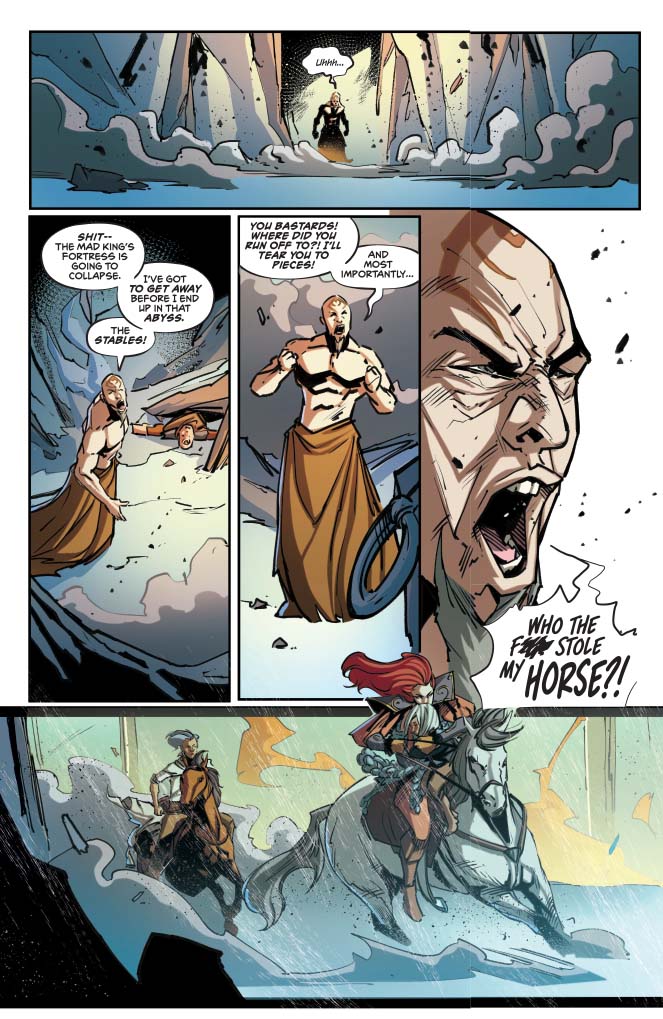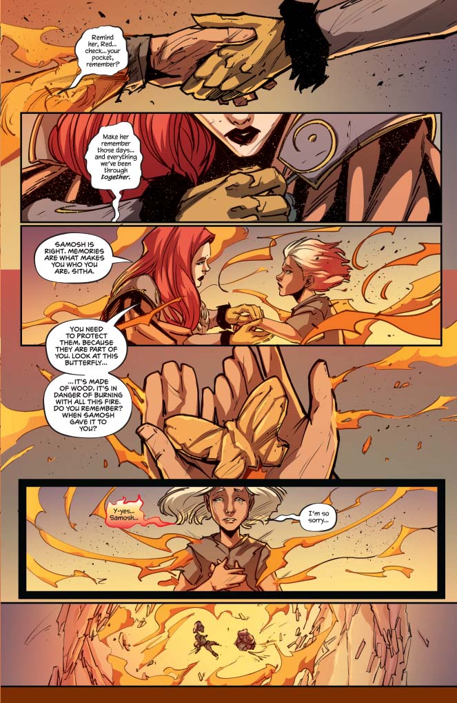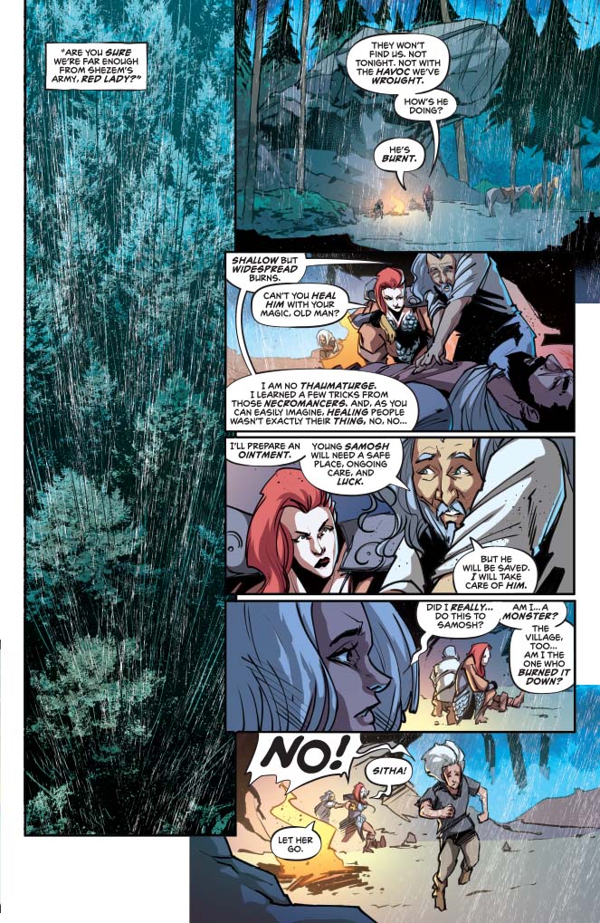 It has been a long journey east to the kingdom of Vindhya. Here is the sanctuary of the Vestals of Xamul, a demigod who lives in the heart of a volcano. In this place, Sonja and the gifted child she protects, seek something very special.