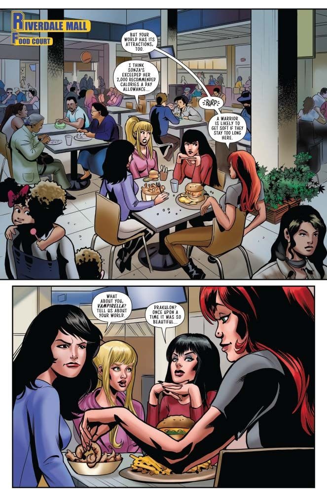 This Thursday sees the release of Red Sonja and Vampirella Meet Betty and Veronica #7, and you can check out a preview of the crossover here courtesy of Dynamite Entertainment…