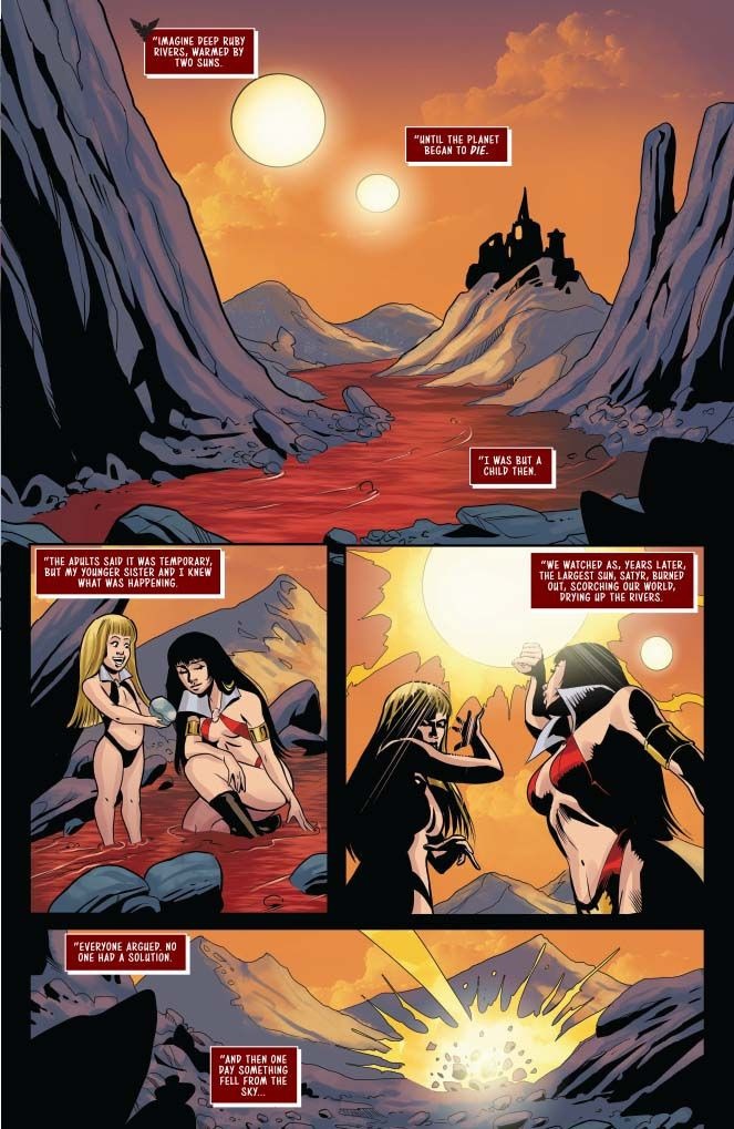 Get ready to boogie through time and space as Betty and Veronica find themselves on a trip to… Drakulon?!! Fresh off solving the murder spree in Riverdale, they take a ride with Vampirella and Red Sonja back to Vampi’s home planet. Twin suns! Rivers of blood! Wicked sunburns in the making! You’ve never seen a spring break like this before. But is it a one-way ticket for the fantastic foursome? Stay tuned to find out!
