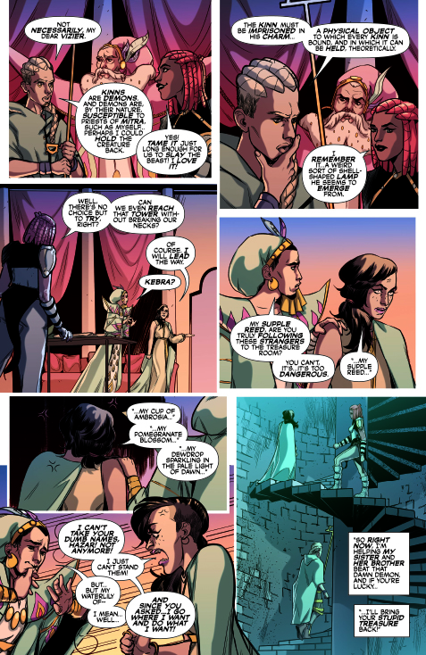 Sitha, Devar, and Kebra reach the city of Belverus, looking for Sitha’s parents, and a fabulous treasure…only to realize they have been caught in a horrible trap! By MIRKA ANDOLFO (Sweet Paprika) and VALENTINA PINTI (Buffy The Vampire Slayer)!