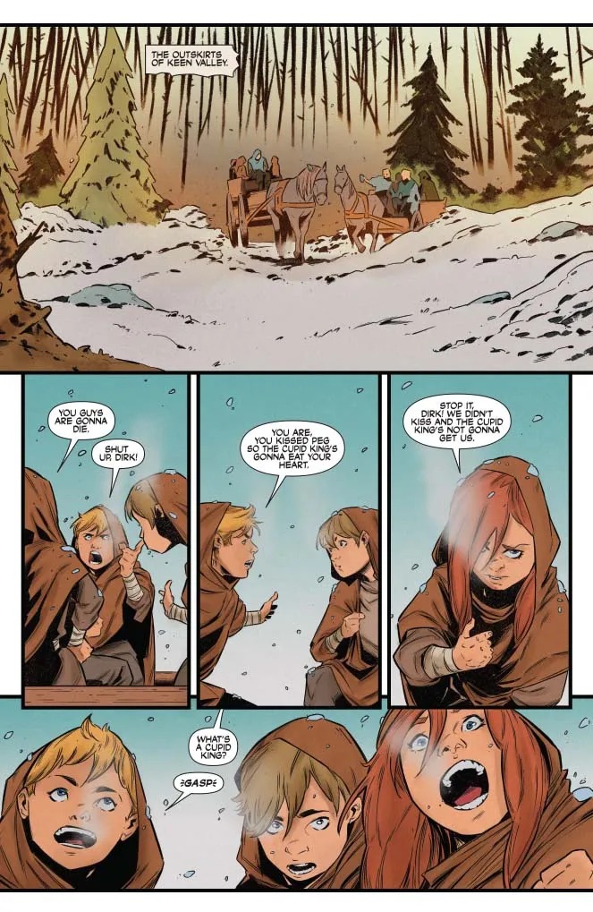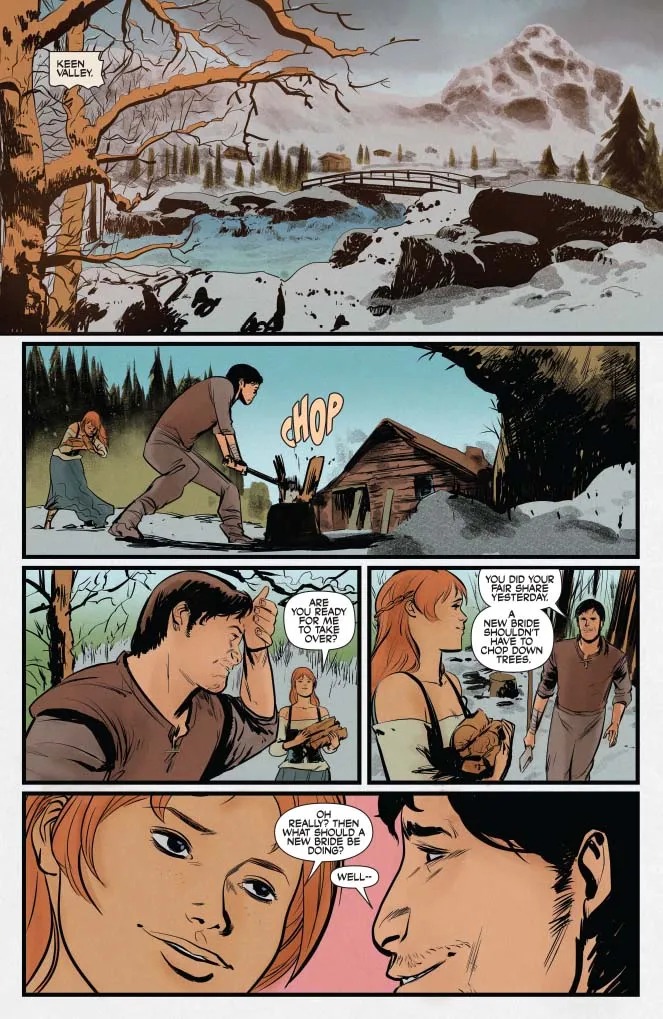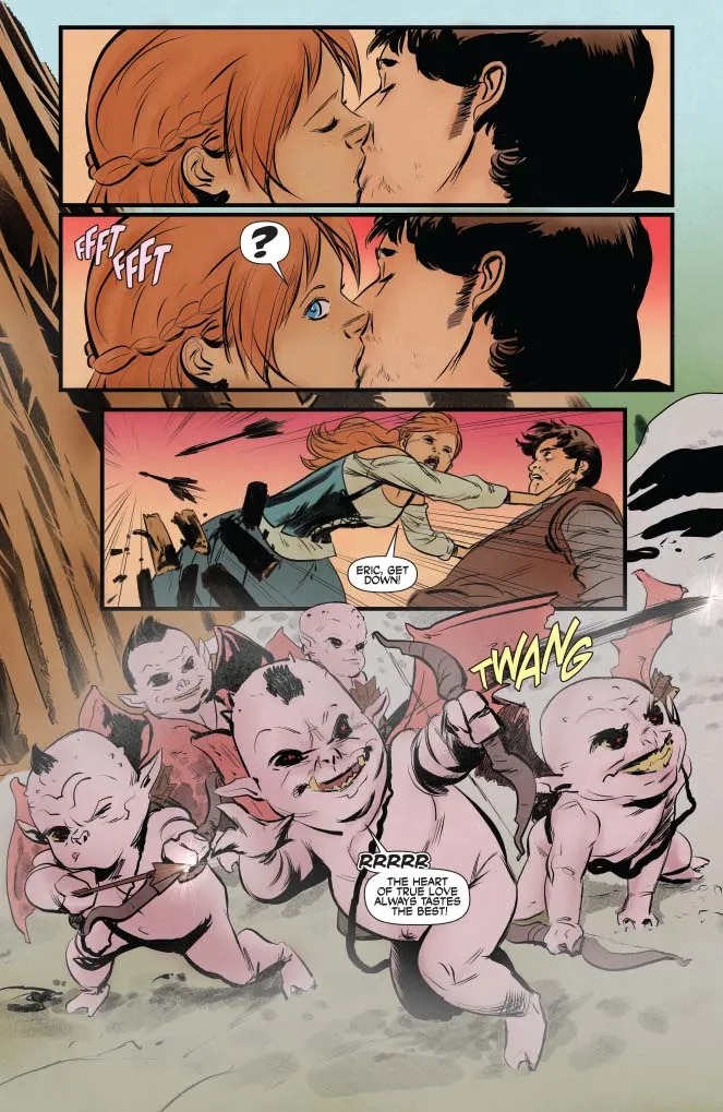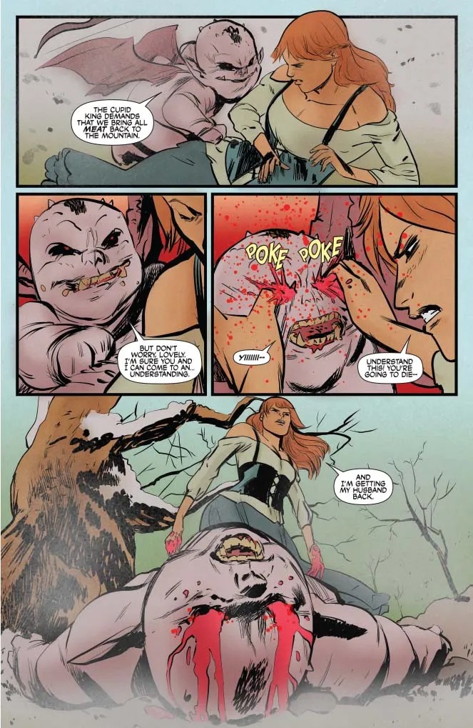 Sonja finds herself amidst a lovers quarrel, in which someone exchanged their heart and soul (quite literally) for overwhelming power. Can Sonja defeat a greedy cherub ogre and restore peace to the freezing lands? By CHUCK BROWN (Aquamen, Bitter Root) and LEE FERGUSON (Daredevil)!”