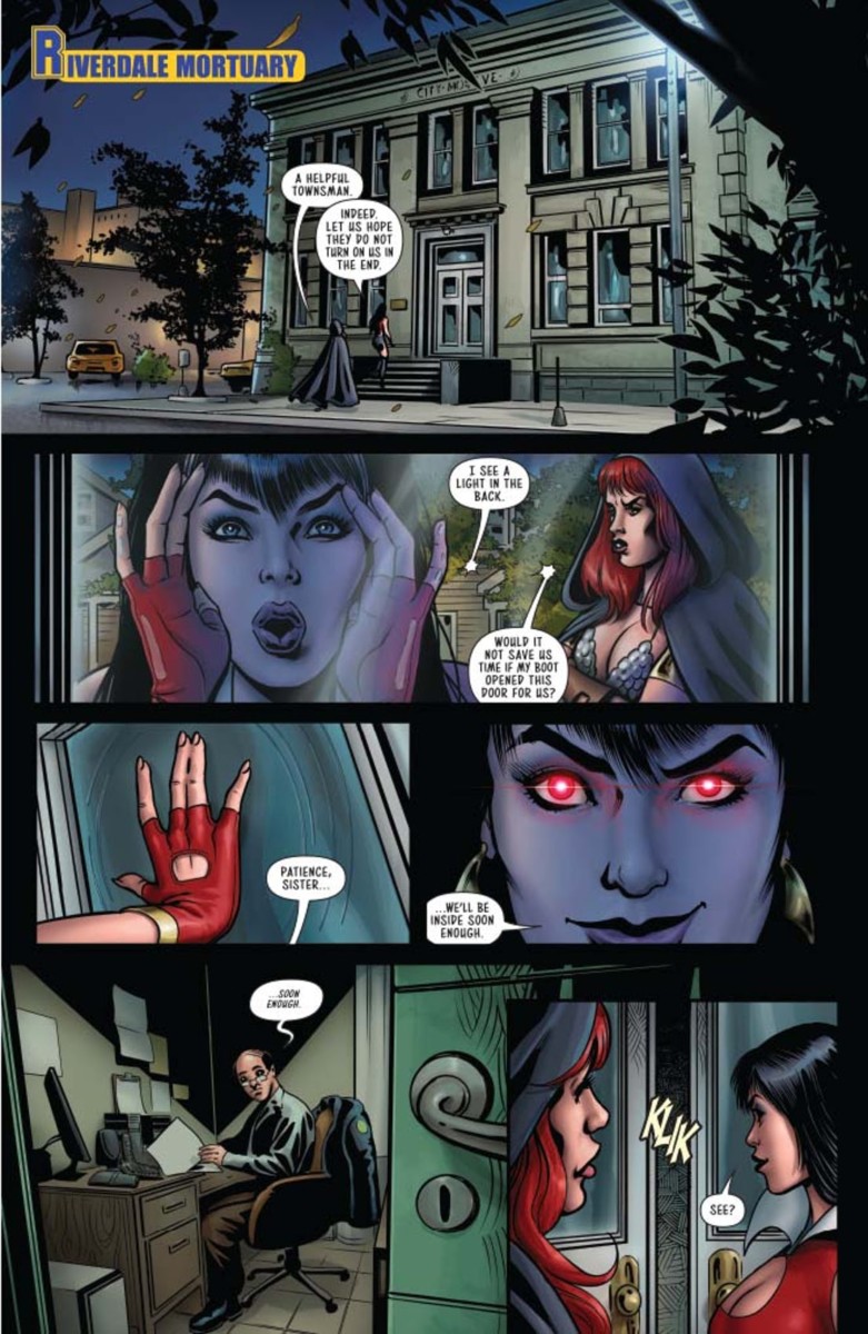 Mystery, murder, and mayhem descends on Riverdale as four of your favorite comic book women meet for the first time. A string of paranormal, unsolved murders leads the vampire hunter Vampirella and her sword-wielding barbarian partner Red Sonja to the small, sleepy town where things always seem to happen… There they discover Betty and Veronica, investigative reporters for the high school newspaper, also hot on the trail of the same killer.