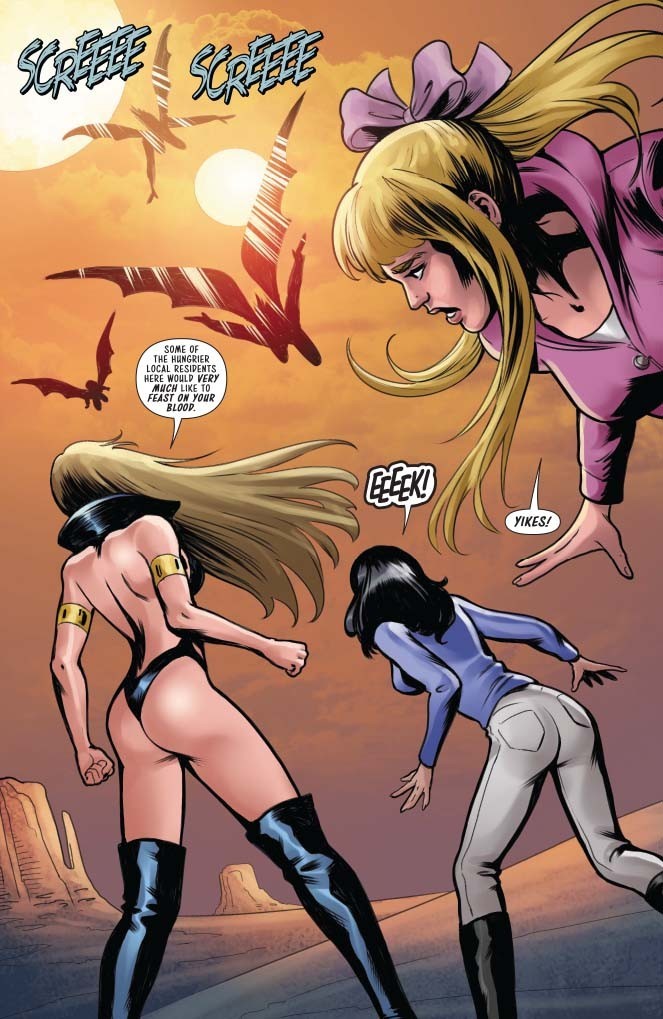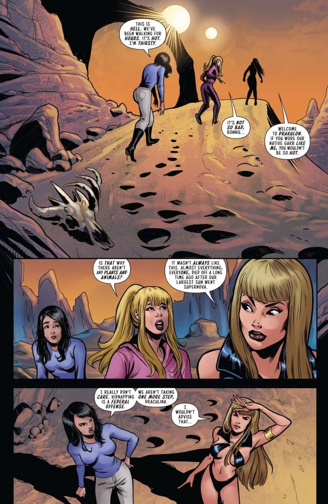 Betty and Veronica in the worst vacation destination ever: Drakulon! Trapped on a hot planet full of thirsty vampiri. Where are Vampirella and Red Sonja when you need them?!