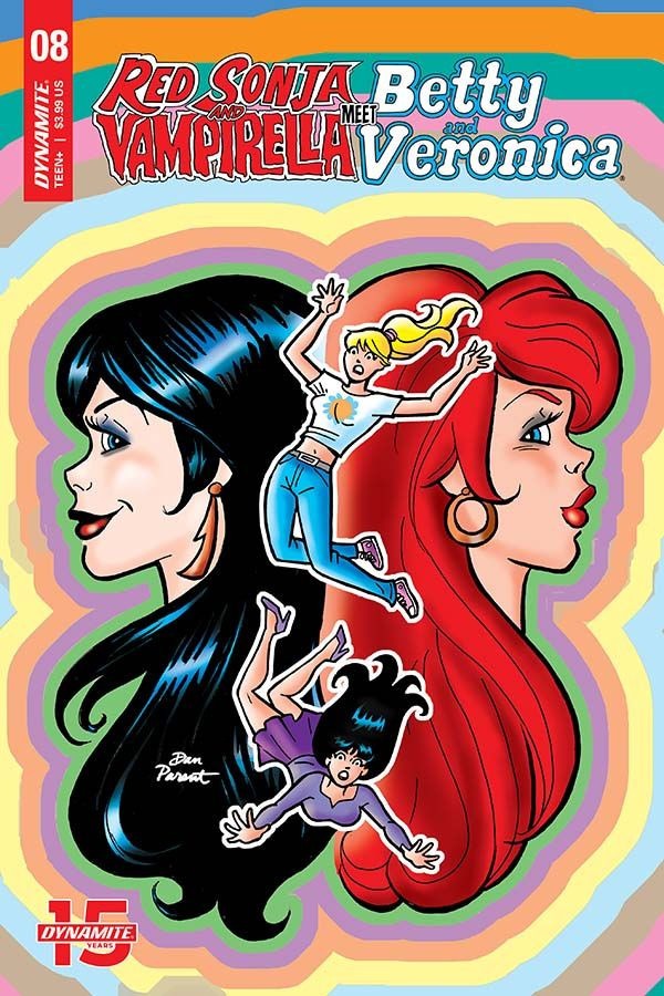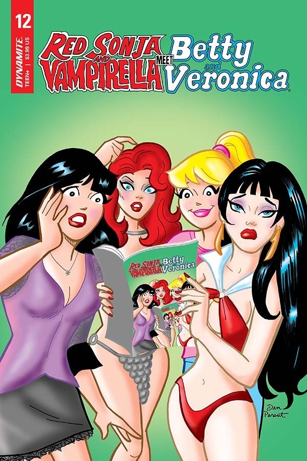 The worlds of Dynamite and Archie collide for a wild ride of intrigue, mysticism, and high school dances in Red Sonja and Vampirella Meet Betty and Veronica Vol. 2, collecting issues #7-12 of the beloved series written by AMY CHU and illustrated by MARIA SANAPO and DAN PARENT!