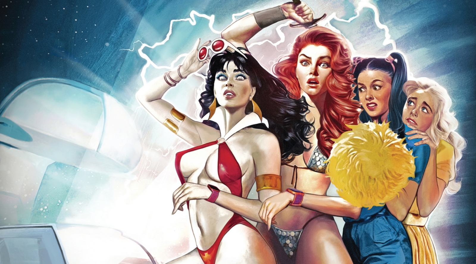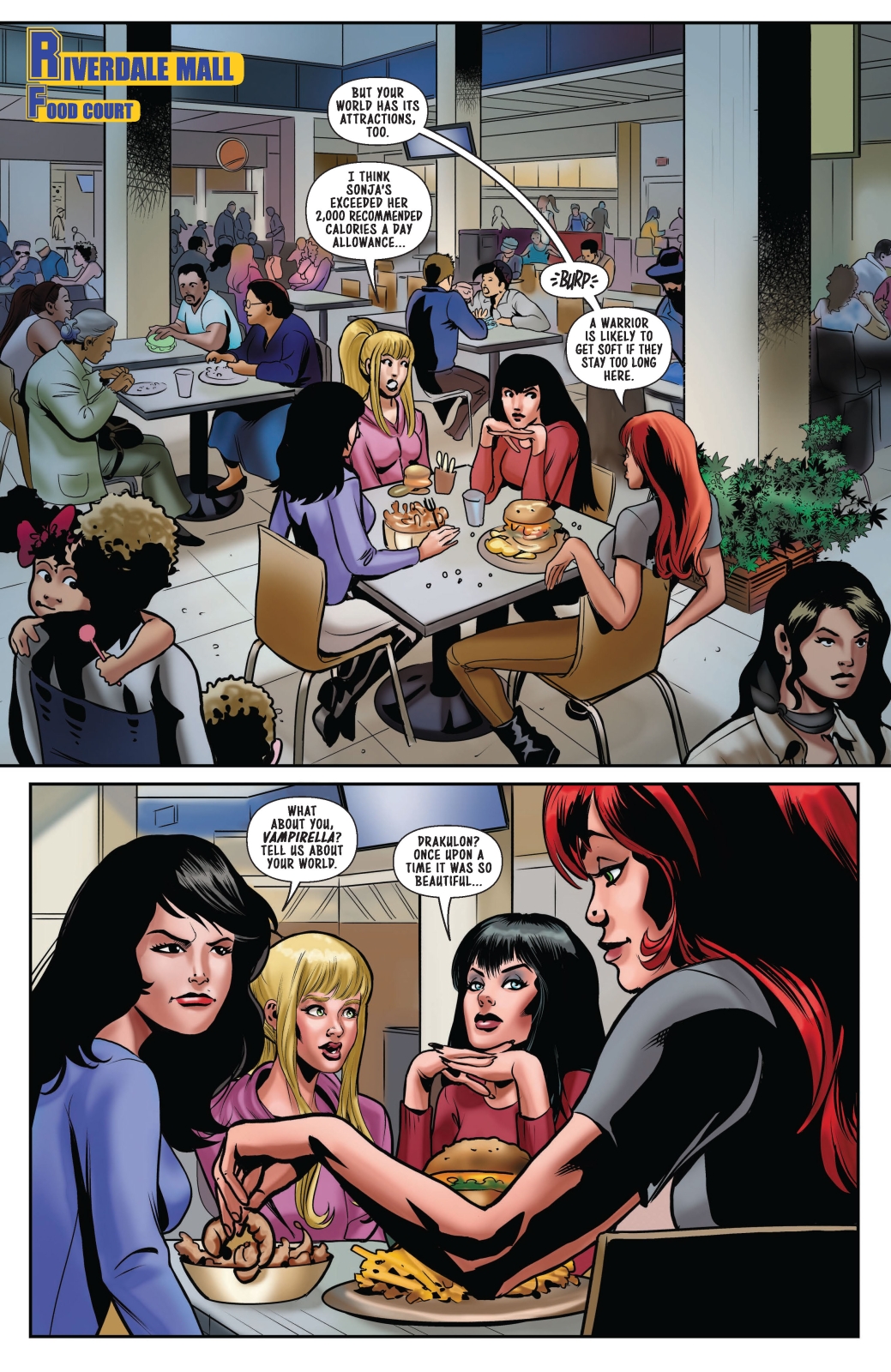 Get ready to boogie through time and space as Betty and Veronica join Red Sonja and Vampirella on a road trip to… Drakulon?!?