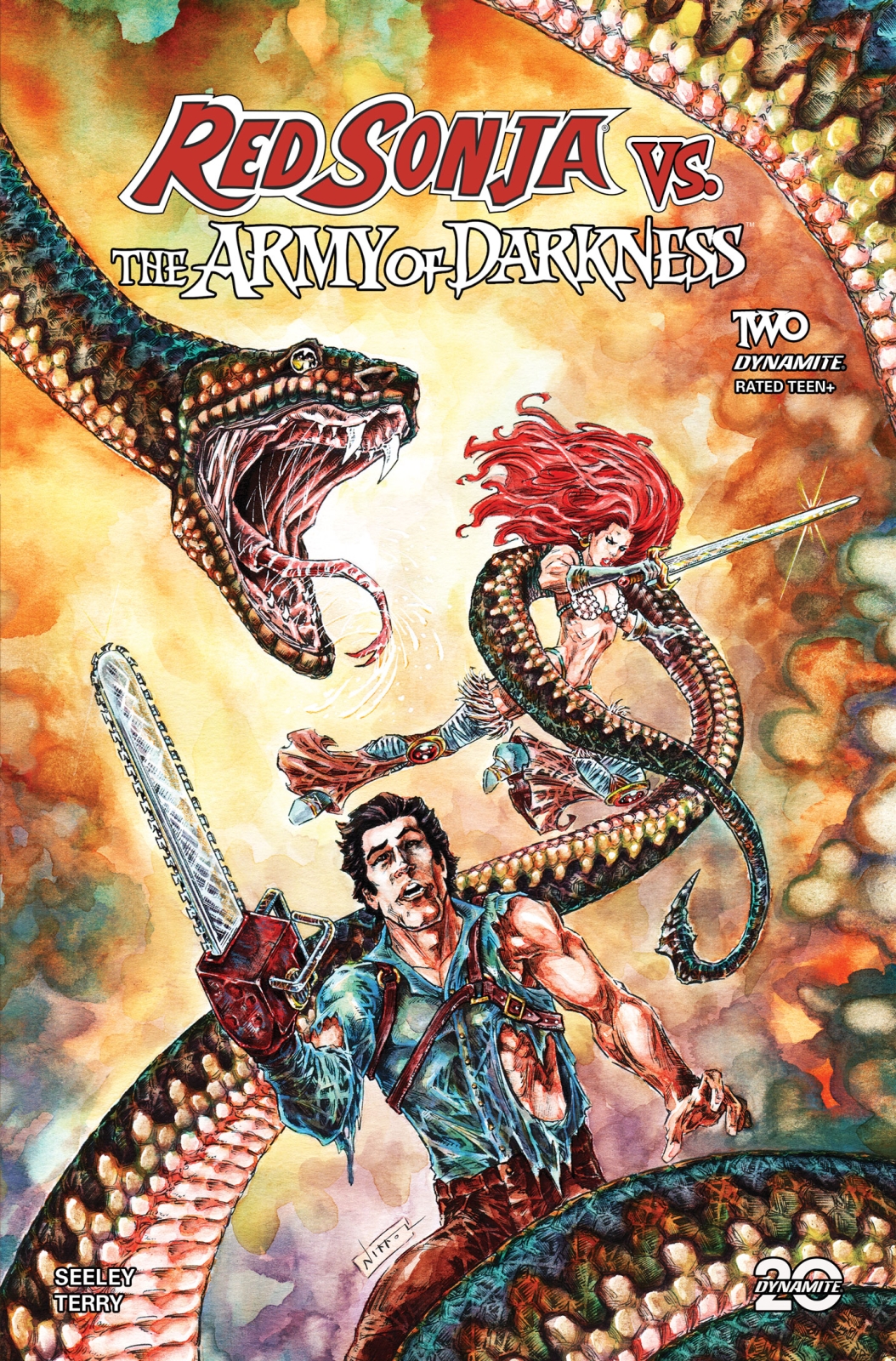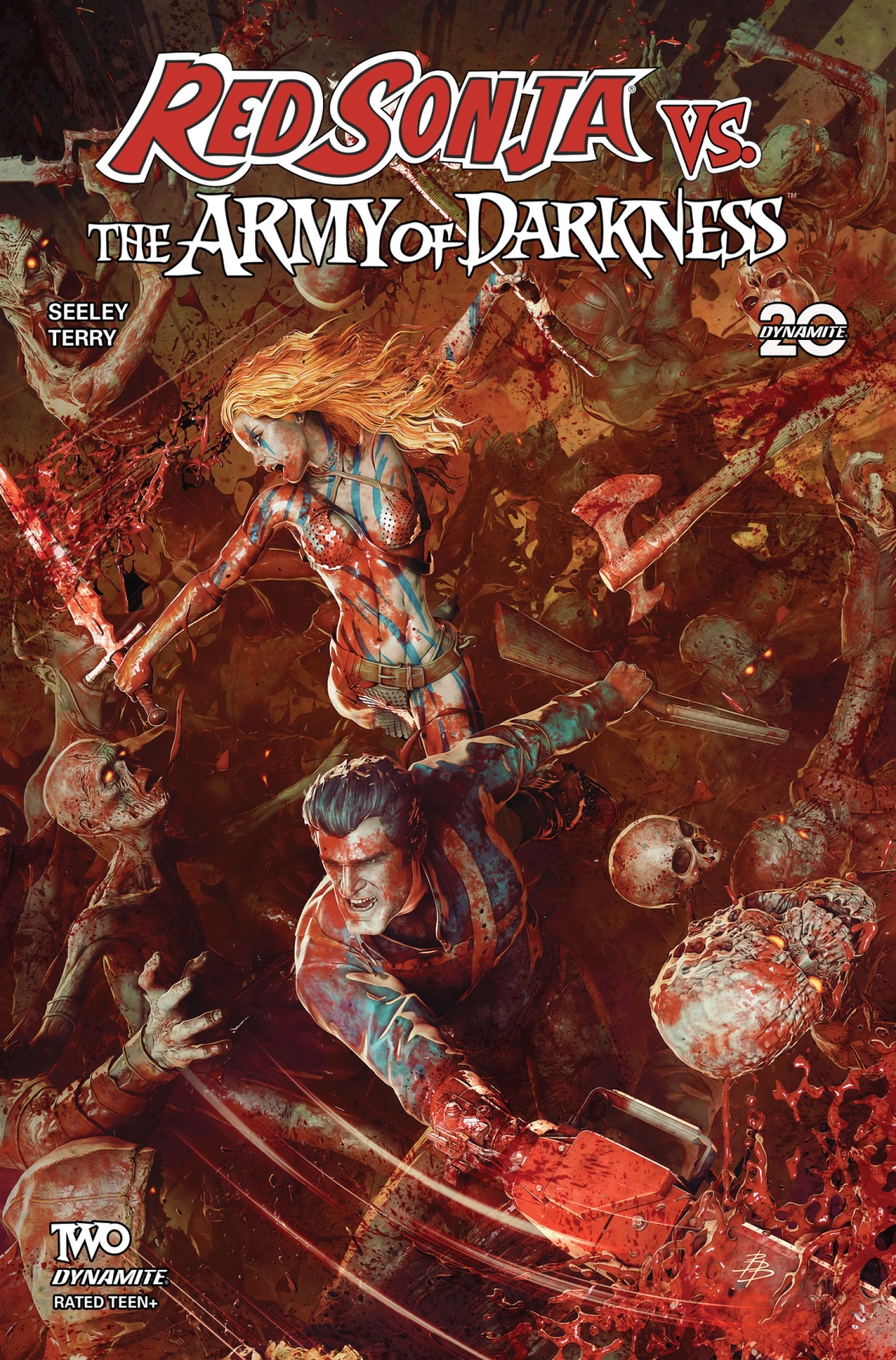 Comic book necromancers TIM SEELEY (Hack/Slash, Batman Eternal) and JIM TERRY (Sundowners, Alice Cooper vs. Chaos) delve into the forbidden realms to bring you the second issue of Red Sonja vs. The Army of Darkness – featuring torturously tinted covers wrought by the gnarled hands of SEELEY, BJORN BARENDS, TOM RANEY, and NIKKOL JELENIC!