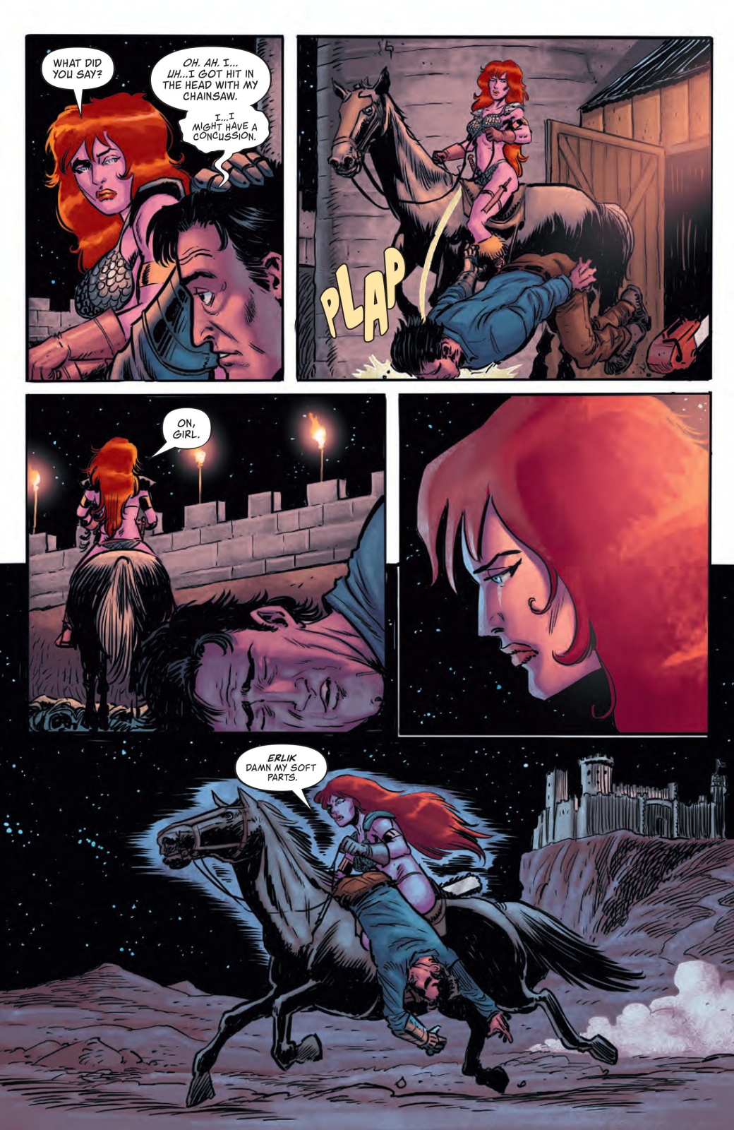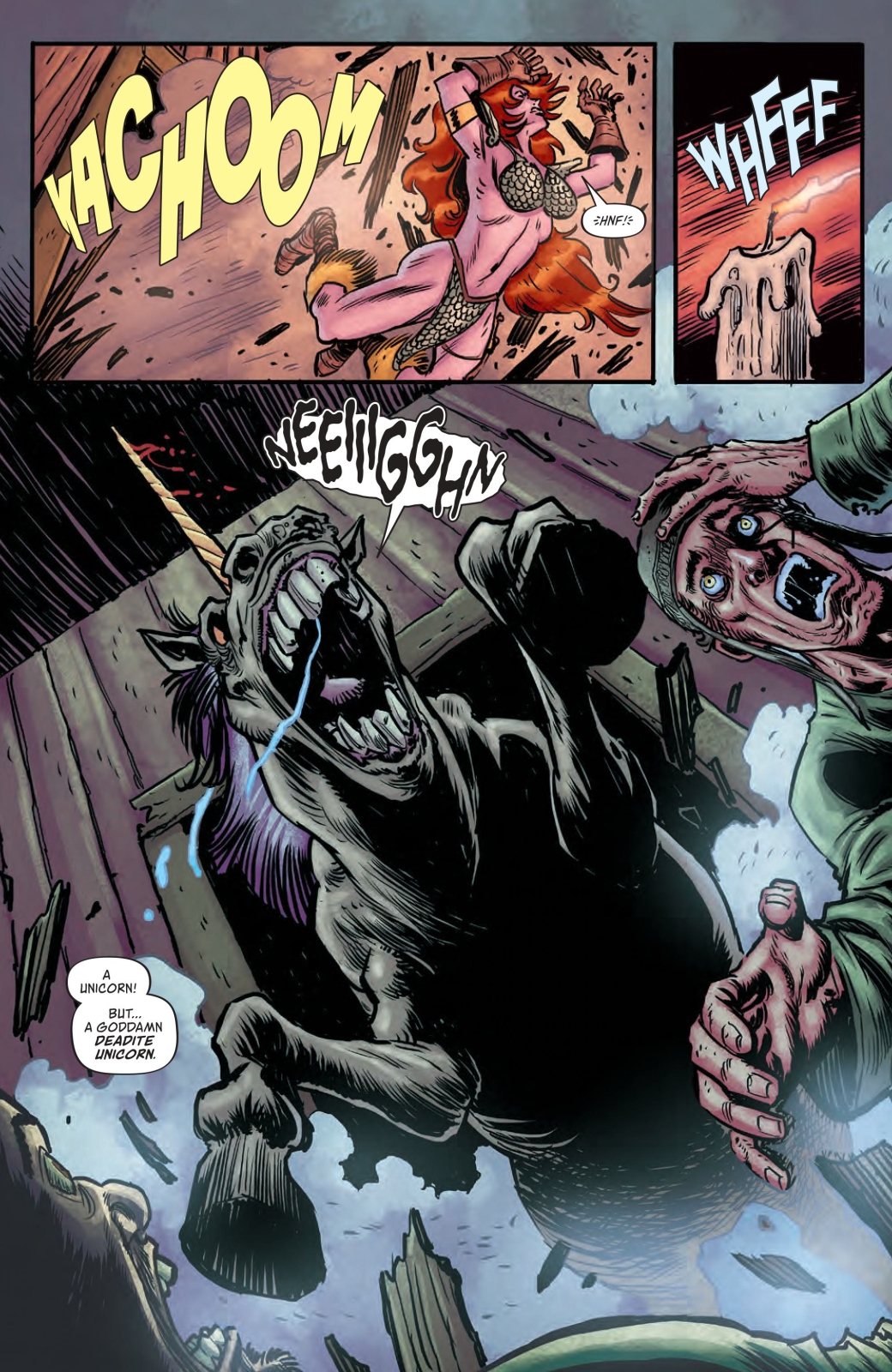 Now that they’re stuck with each other and facing off against both a Deadite horde and Kulan Gath, Sonja and Ash form an uneasy… alliance? Yeah, let’s go with that. But can the She-Devil with a Sword and the hapless hero with a boomstick cooperate long enough to stop this fresh influx of evil into the Hyborian Age? And more important – is that… a Deadite unicorn?!?