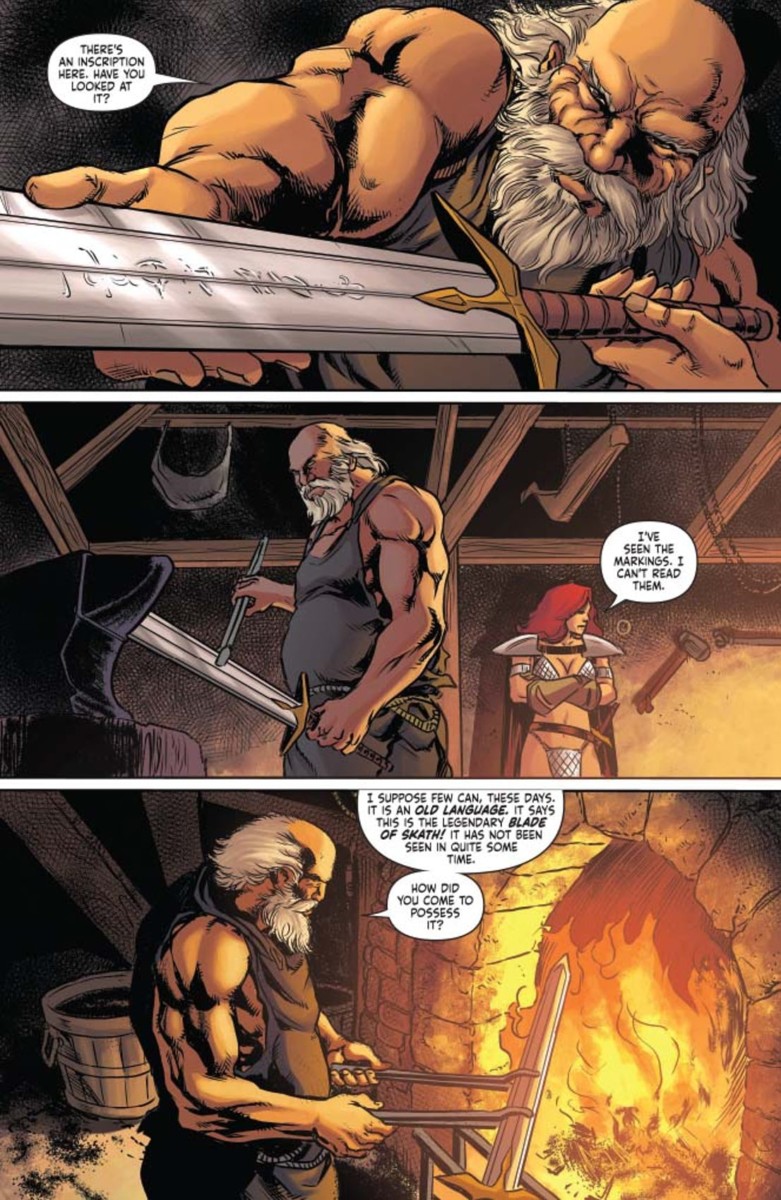 Following the defeat of Kulan Gath, Sonja discovers her trusty sword has a secret history as the legendary Blade of Skath and faces a decision: does she keep her steel, or return it to its rightful Cimmerian owner?