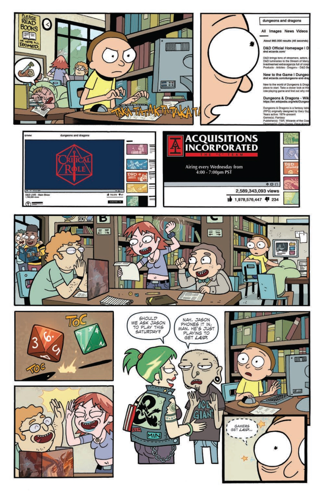 Then, in the hit series Painscape, magical D&D adventures come to Earth… but will anyone survive? The world’s greatest role-playing game returns to plague the world’s most dysfunctional animated family! And this time, we can’t just rest on brand-name recognition and curiosity to fuel your interest, Morty, because no one gives a d-d-damn about sequels unless they’re really good, so no pressure, you hacks!