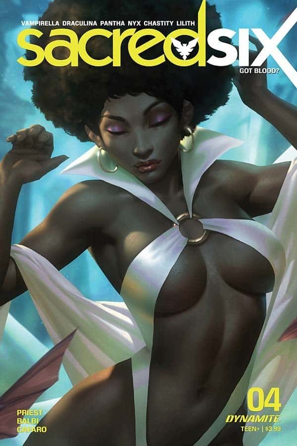 Vampirella, Draculina, Pantha, Nyx, Chastity and Lilith are back this week as Dynamite Entertainment releases Sacred Six #4, and we have the official preview of the issue for you here…
