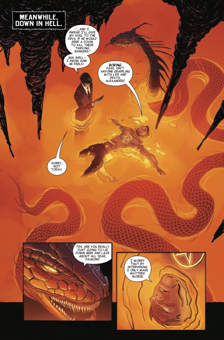 A barbarian walks into a brothel and thus begins another adventure in the life of Conan of Cimmeria. Human traffickers finally meet an immovable human. Black Widow is drawn into the intrigue by following the trail of bodies left by Kulan Gath’s henchman, and a last prayer from one of the trafficked women summons an unexpected angel, the Son Of Satan himself, Daimon Hellstrom. It’s the Marvel team-up you didn’t know you needed until now. Pre-order Savage Avengers Annual # 1 or go to hell.