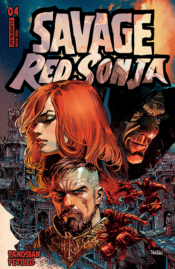A tale of adventure and deception unfolds as the She-Devil With a Sword comes face to face with the irksome Mayor Sem! Will the Slayers of Shadizar finally defeat Hyboria’s greatest warrior, or will they find themselves the victims of her cunning and strength? Find out in this exciting fourth issue of DAN PANOSIAN and ALESSION PETILLO’s Savage Red Sonja — and dive deeper into the mystery of the Pale Witch Markus and the power of the scepter as well!
