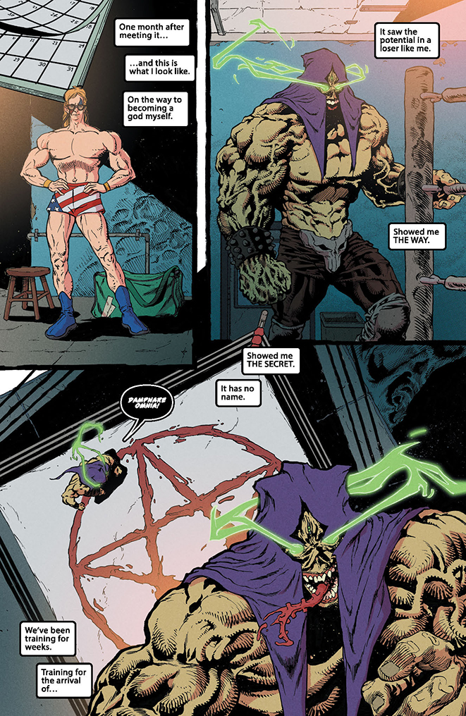 • “Devil Juice” by Scott Bryan Wilson and Max Fuchs: Draculina finds that to get revenge on an enemy demon, she’s first got to go through a wall of…body builders?