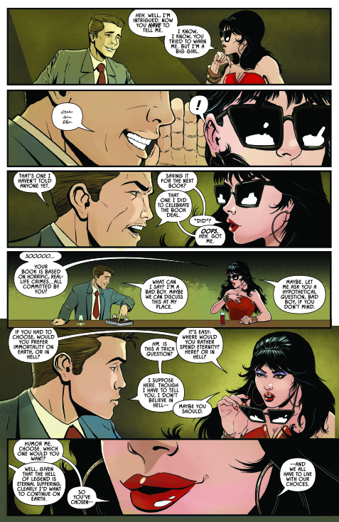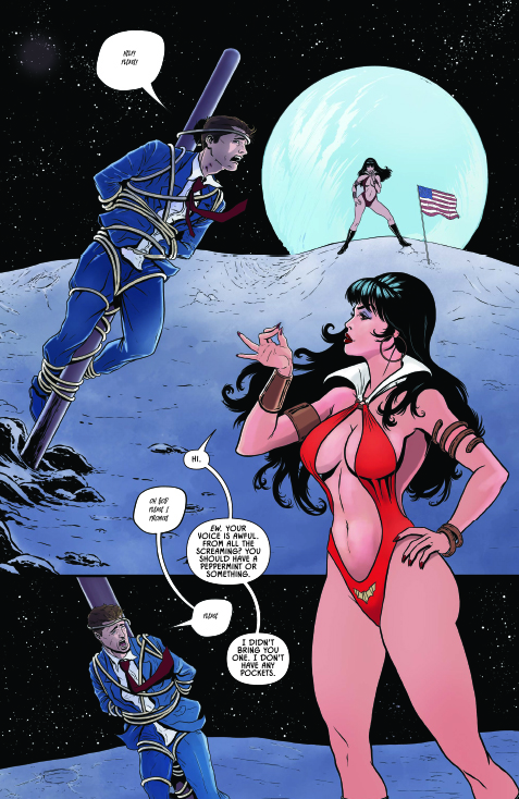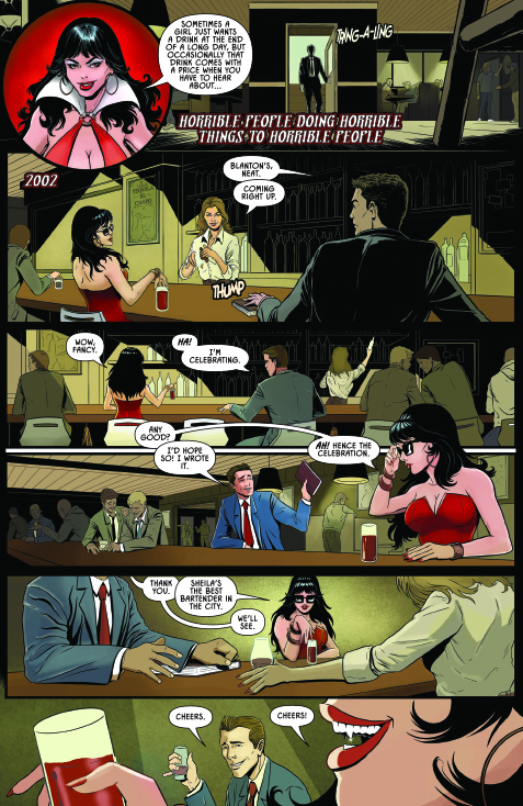 • Vampirella in “Horrible People Doing Horrible Things To Horrible People,” by writer Scott Brian Wilson and Kubert School artist Mariano Benitez Chapo: Harkening back to the spirit of the Warren Magazine era, Vampirella serves out a lesson in morality as only she can!