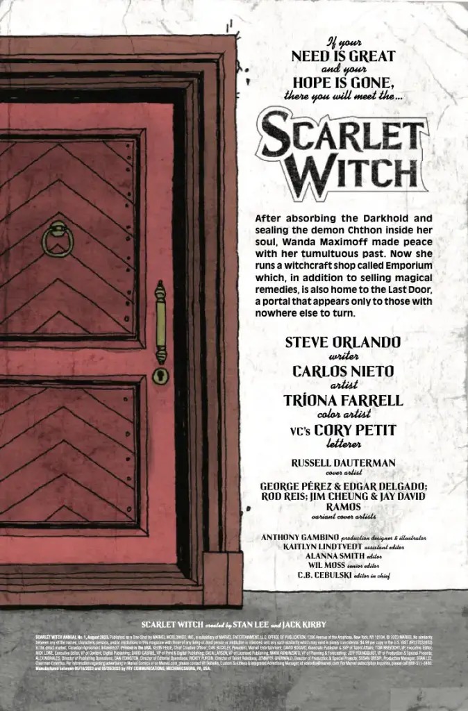 Marvel sets the stage for Contest of Chaos this coming week with the release of Scarlet Witch Annual #1; check out the official preview below…
