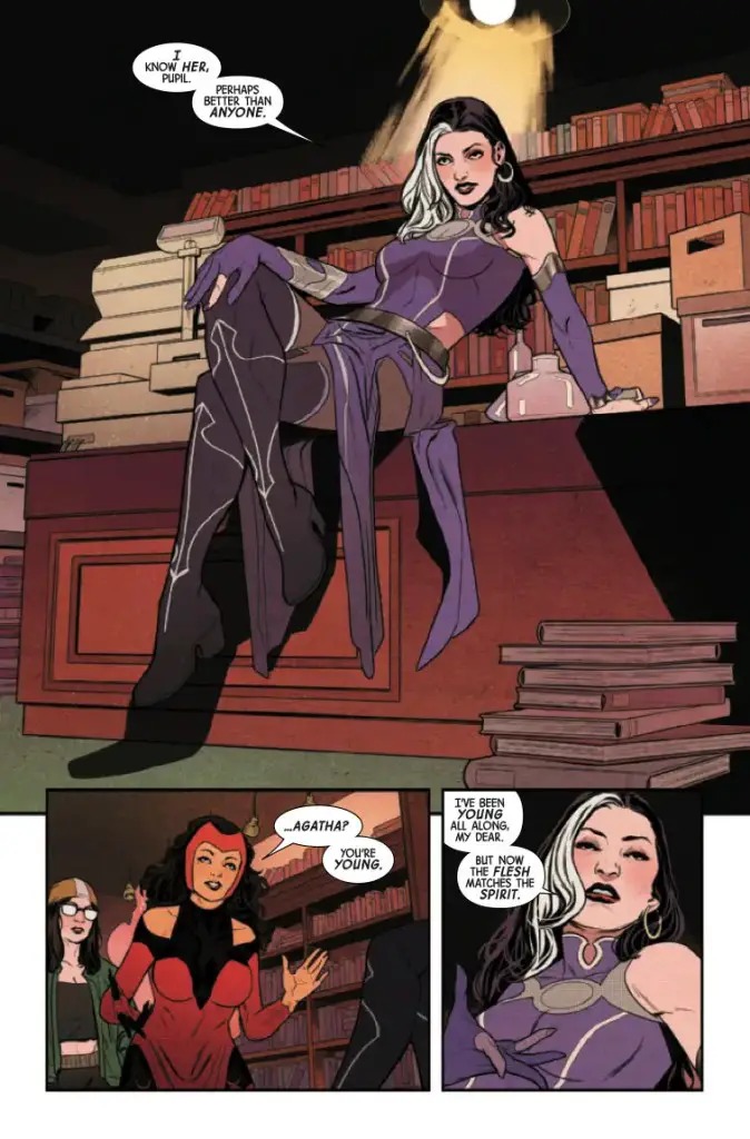 “CONTEST OF CHAOS” PRELUDE! When a newly rejuvenated Agatha Harkness learns of the Scarlet Witch’s recent absorption of Chthon, she decides to educate her former student on the dangers of such an endeavor. But Wanda is not the meek pupil she once was—and Agatha’s intentions are not so straightforward. This epic clash between Marvel’s most powerful witches sets off a chain reaction that will affect the course of Marvel’s summer!