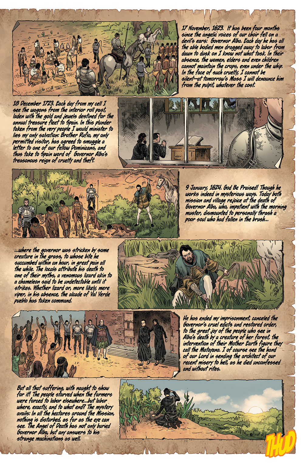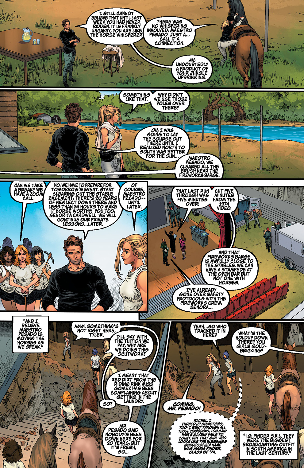 It’s Quatercentenary Day at L’école des jeunes filles du Val Verde! On the agenda: VIPs, a lovely buffet, fireworks… oh, and a diabolical crime four hundred years in the making! As the secret police cordon off the campus and more and more students succumb to the cult of the “Blessing Goddess,” the aptly named mastermind El Caballero brutally demonstrates that he’s not horsing around — and Sheena has only hours to discover where the proverbial bodies are buried before she becomes one herself! Both urban and actual jungle explode with action in this jam-packed final issue — featuring 25 story pages!